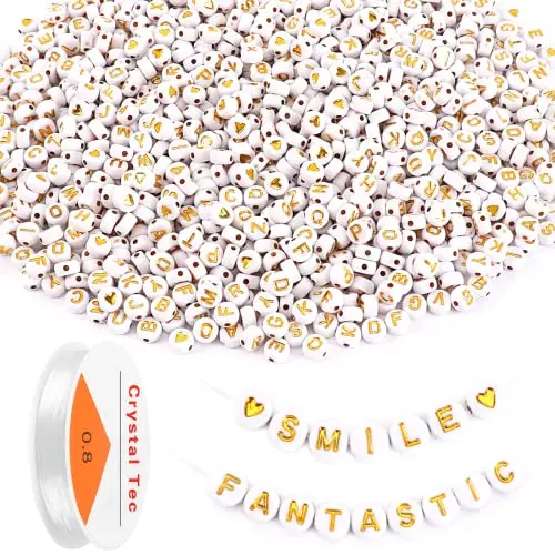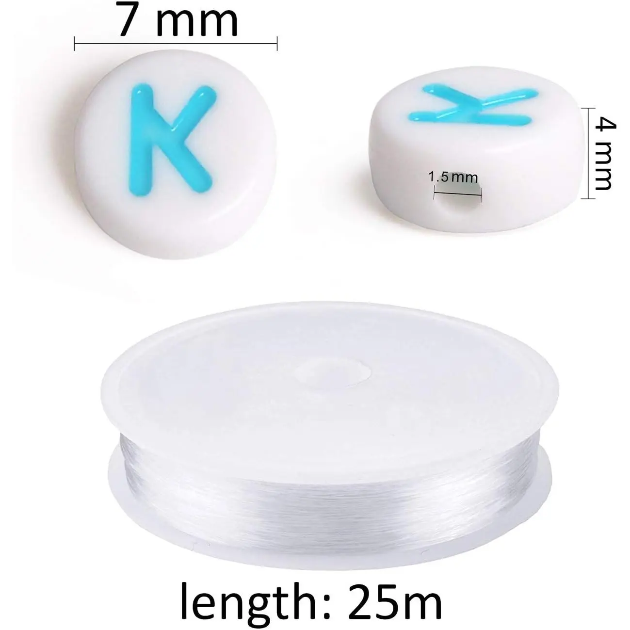 1900pcs 7 Colors Round Letter Beads Acrylic Alphabet Number Beads with 1 Roll Elastic Crystal String Cord for Jewelry Making DIY Necklace Bracelet (7x4mm)