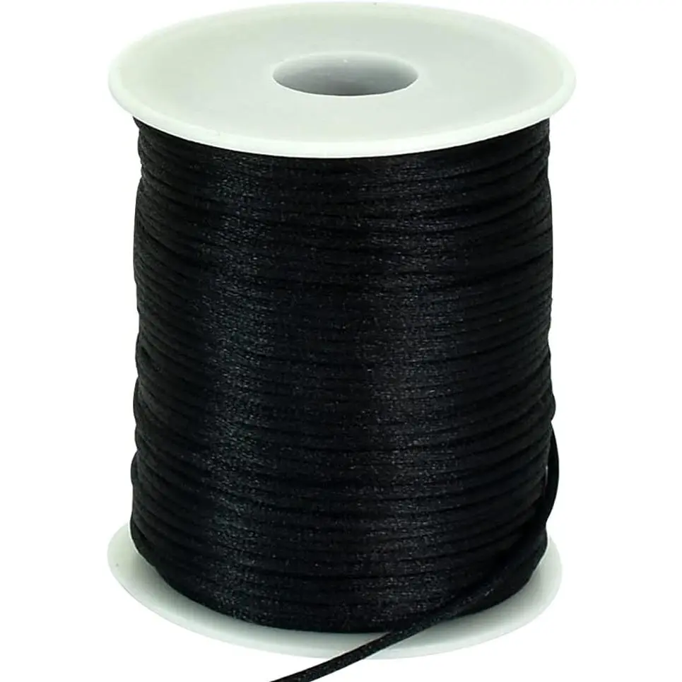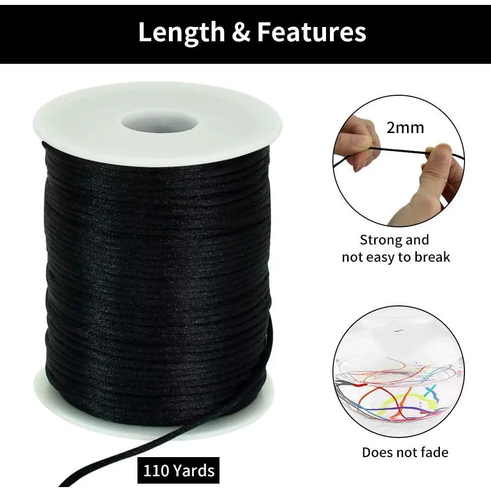 TONIFUL 2mm x 110 Yards Black Nylon Cord Satin String for Bracelet Jewelry Making Rattail Macrame Trim Cord Necklace Bulk Beading Thread Kumihimo Chinese Knot Craft