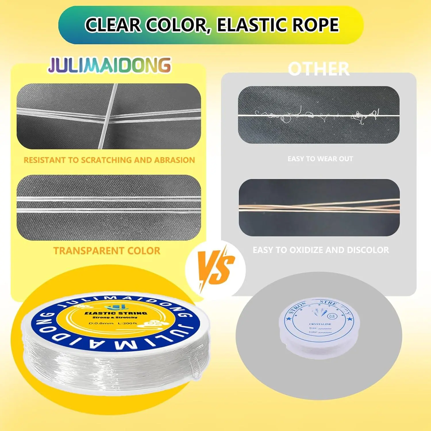 0.8mm Elastic Bracelet String Cord, Crystal Stretch Bead Cord for Bracelets Jewelry Making, Clear Stretchy Elastic String for Beading, Transparent Thread (0.8MM/200ft)