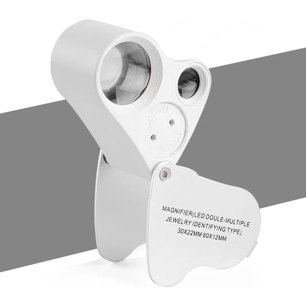 KINGMAS 2 Lens 30x 60x Illuminated Jewelry Eye Loupe Jewelers Magnifier Magnifying with LED Lighting