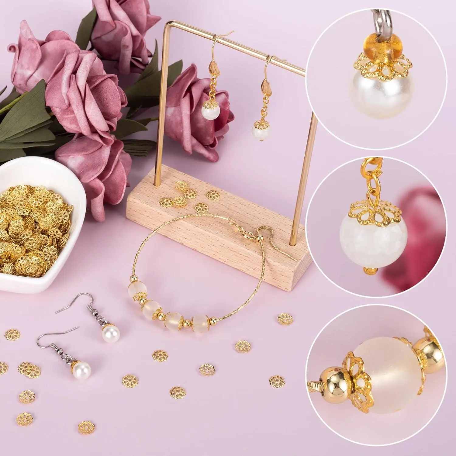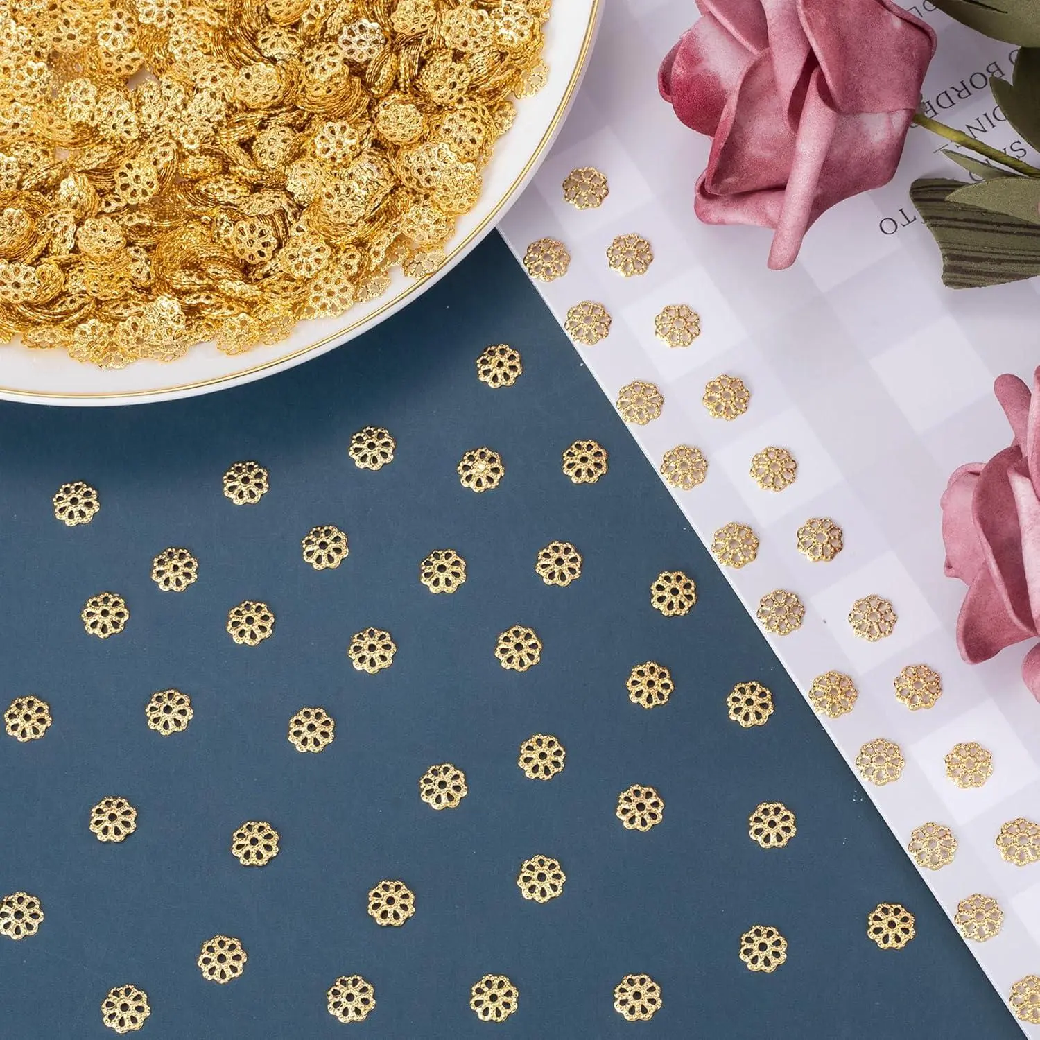 ANCIRS 600pcs 7mm Spacer Beads Caps for Jewelry Making, Metal Flower Bead Caps for Bracelet Necklace- Gold
