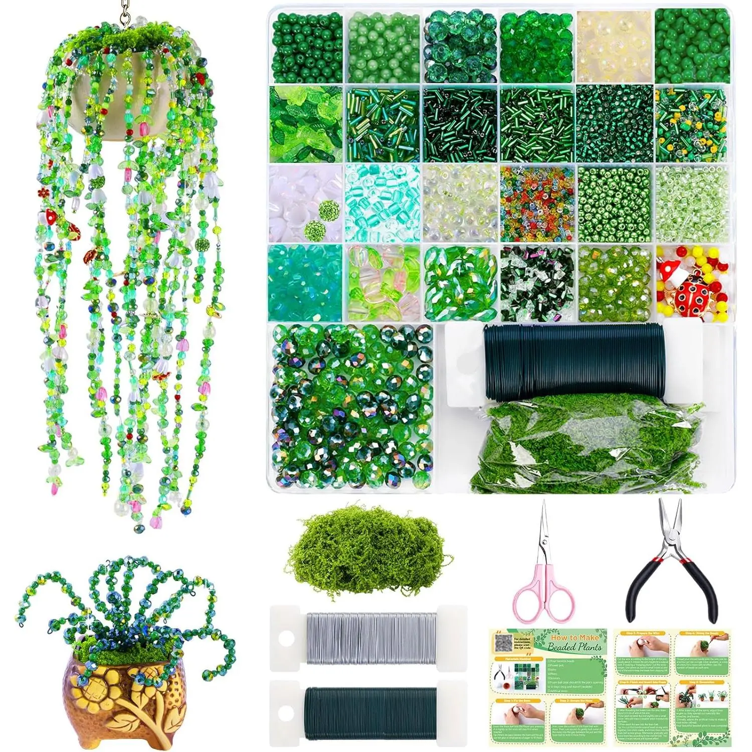 FOGWOWO 5422 Pcs Beaded Plant Kit Forever Plant Kit Green Glass Beads for Plant Making,Green Beads for Beaded Plants with Video Tutorials,Forever Plant Beads Leaf Bead for Jewelry Making DIY Craft