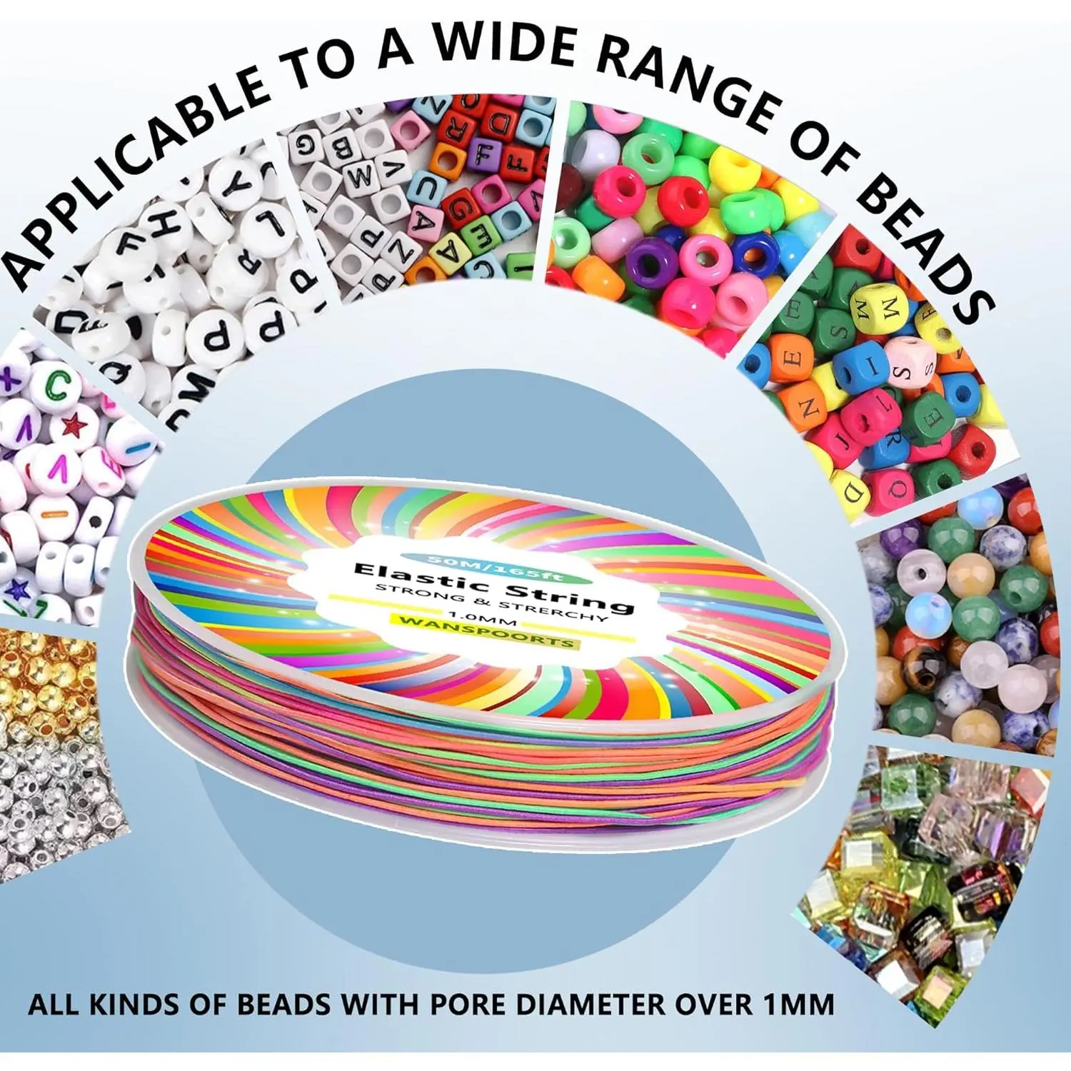 1mm 165ft Rainbow Stretchy Bracelet String, Sturdy Gradient Color Elastic String Elastic Bead Cord for Jewelry Making, Necklaces, Beading and Crafts (Rainbow(50M/165ft))