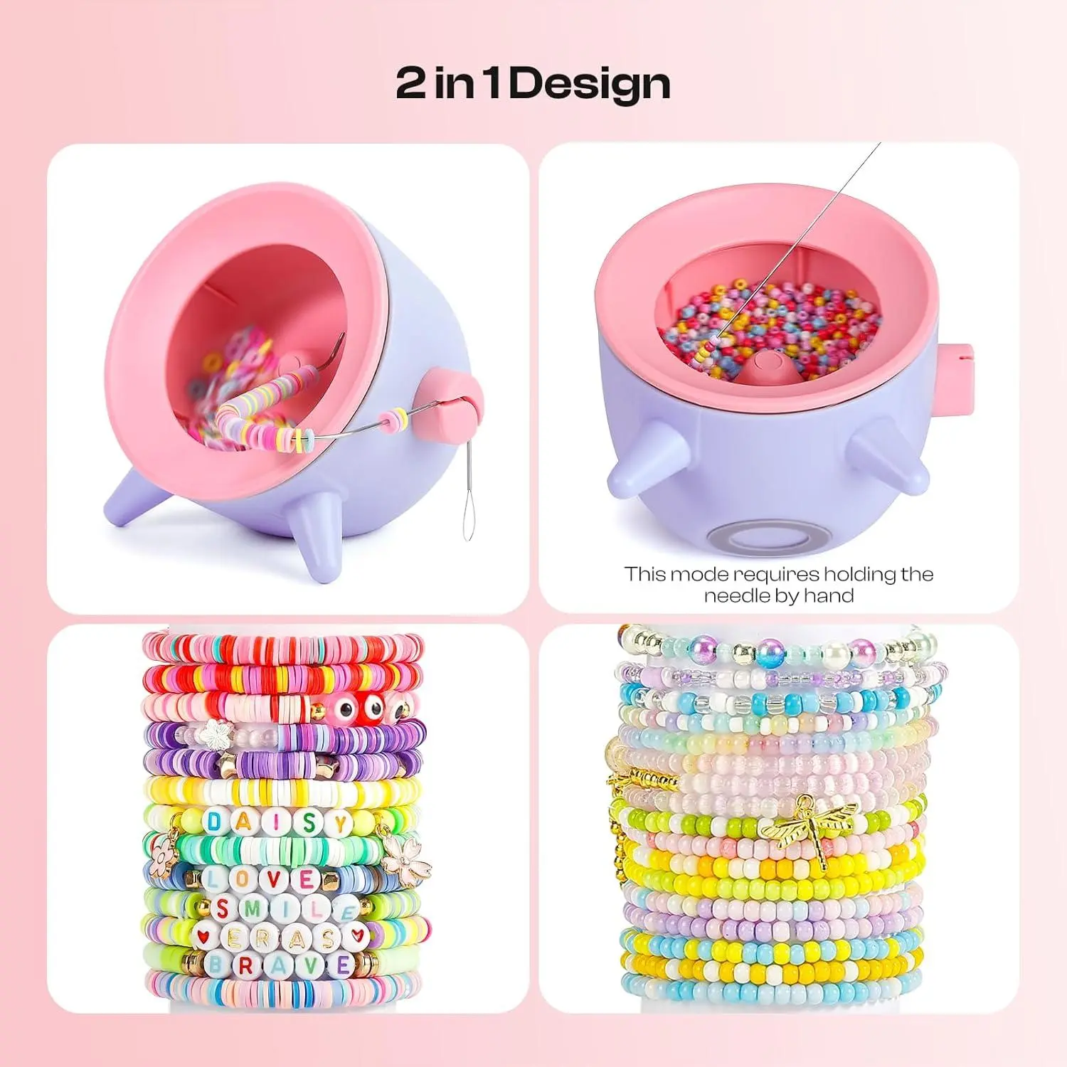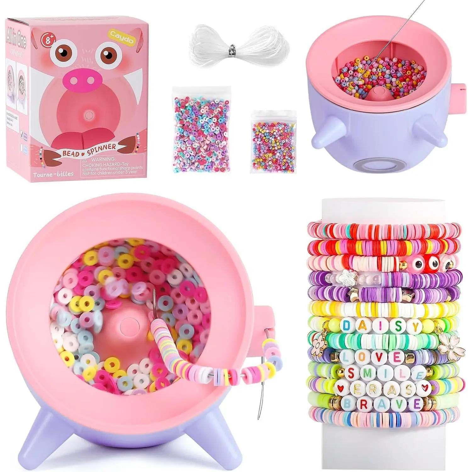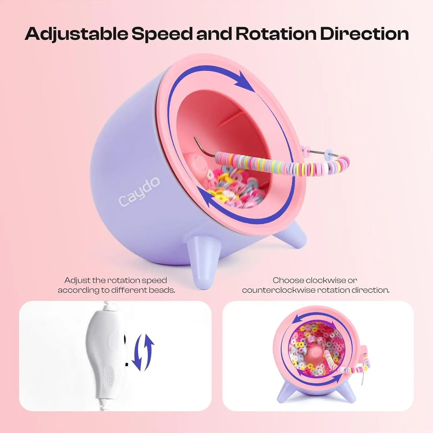 Caydo 2-in-1 Clay and Seed Bead Spinner for Jewelry Making, Electric Bead Spinner, Bracelet Maker Machine, Necklace Making Machine with Bead Needles and Thread for Adult & Craft Lover, Purple