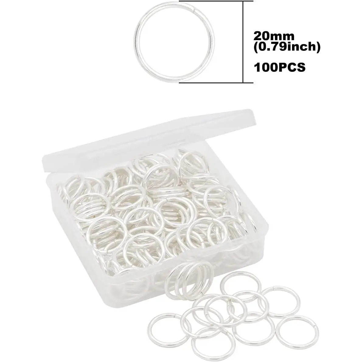 100Pcs Open Jump Rings 20mm Silver Jewelry Connectors for Jewelry Findings Making Supplies,Bracelets,Keychain,Necklace,Anklets,Arts and Crafts (Silver)