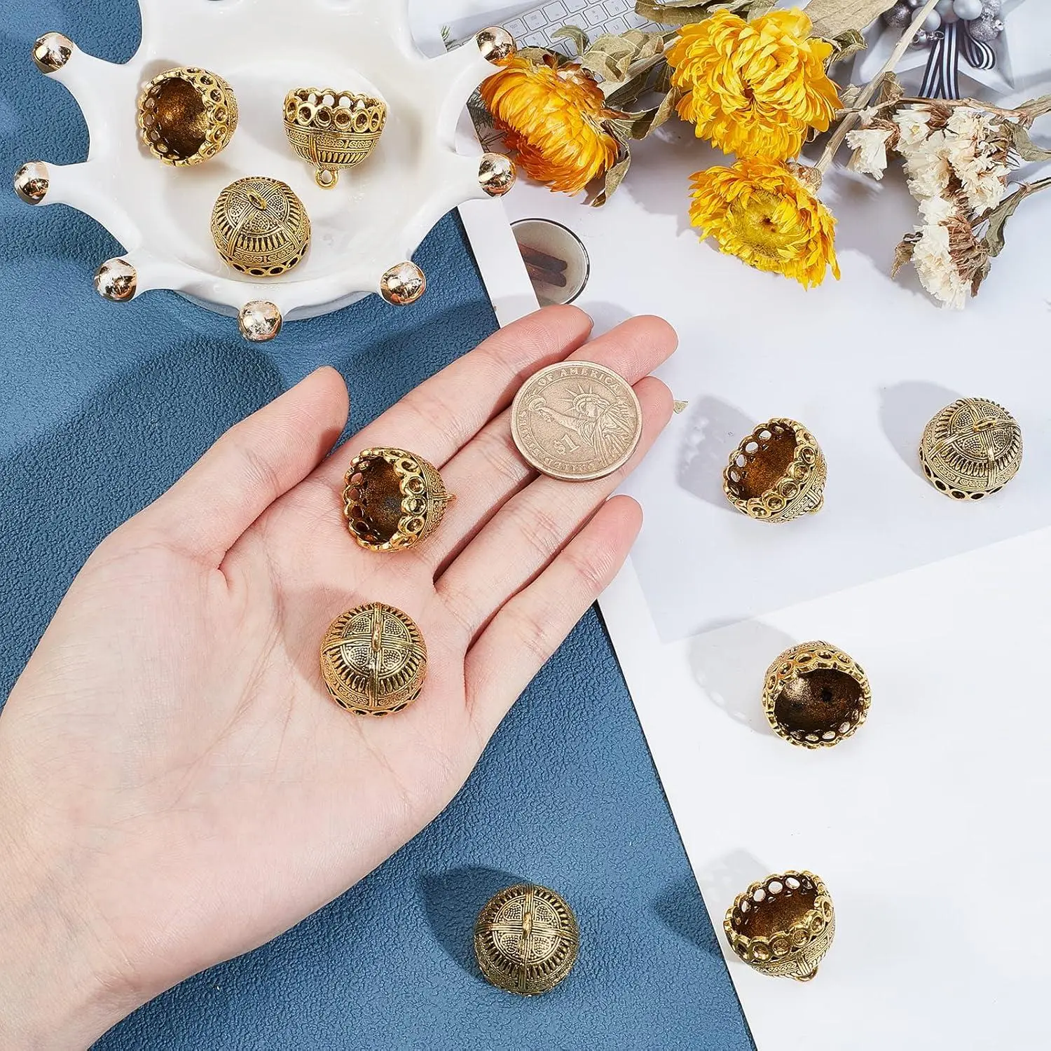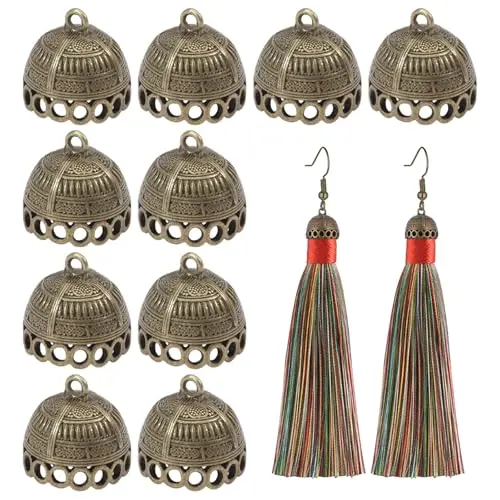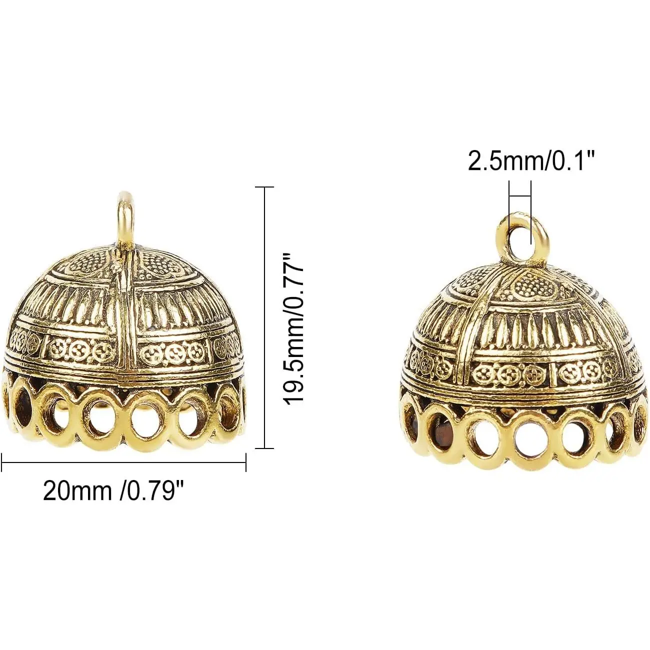 CHGCRAFT 10pcs Column Metal Cord Ends charms Tibetan Style Glue on Tassel charm Bails with Loop Gold End charms for Jewelry Makings DIY Crafts 19.5x20mm, Antique Golden