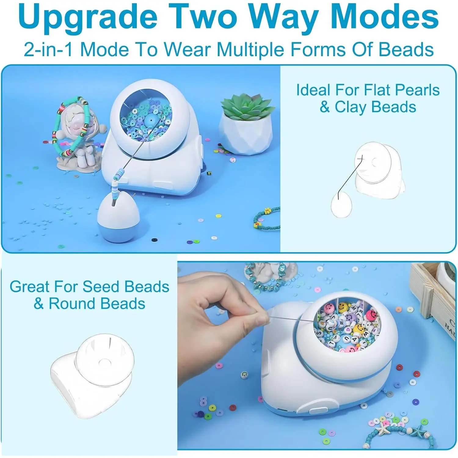 Pskfvre Cordless Bead Spinner, Speed Adjustable Electric Clay Beads Spinner and Seed Bead Spinner Bracelet Maker for Jewelry Making Machine with 2 Thick Eye Needles for Necklace, Gift Ideas for Girls