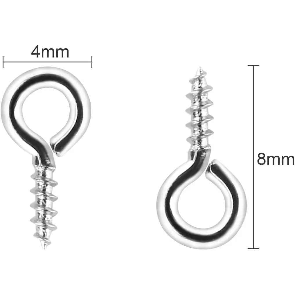 500PCS 4 x 8mm Small Screw Eye Pins for Jewelry Making, Mini Eyelets Threaded Clasps Hooks for Art DIY, Metal Hoop Peg/Bracelet Connectors