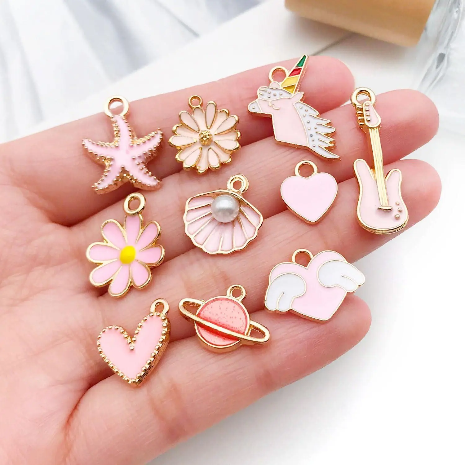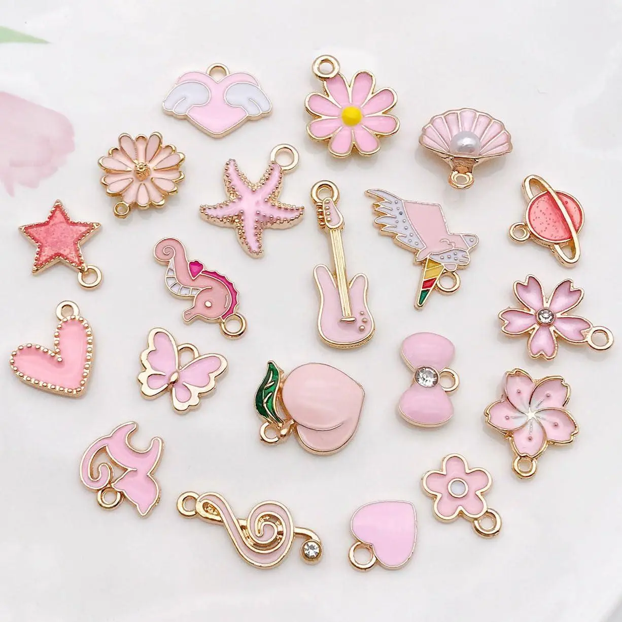 WOCRAFT 40pcs 20 pairs Assorted Enamel Bracelet Charms for Jewelry Making DIY Necklace Bracelet Earrings Keychain Crafting Charms Kit Crafts (Pink-SN991)