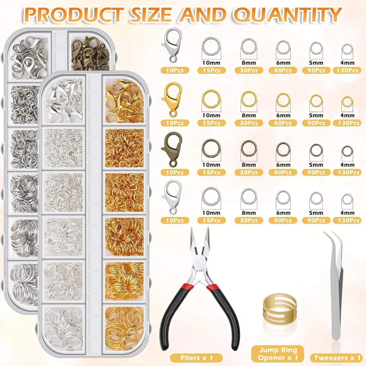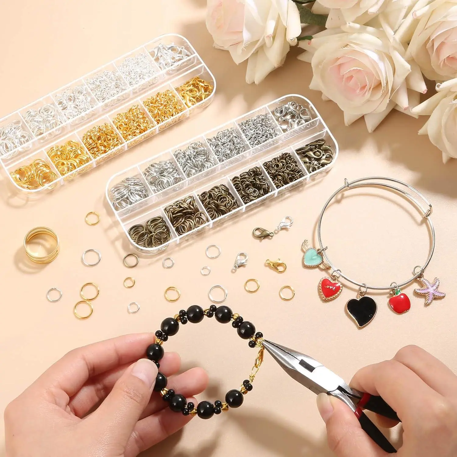 PAXCOO Jewelry Making Kit, 1260 Pcs Assorted Color Jump Rings & Lobster Clasps with Tools & Pliers for Necklace Repair