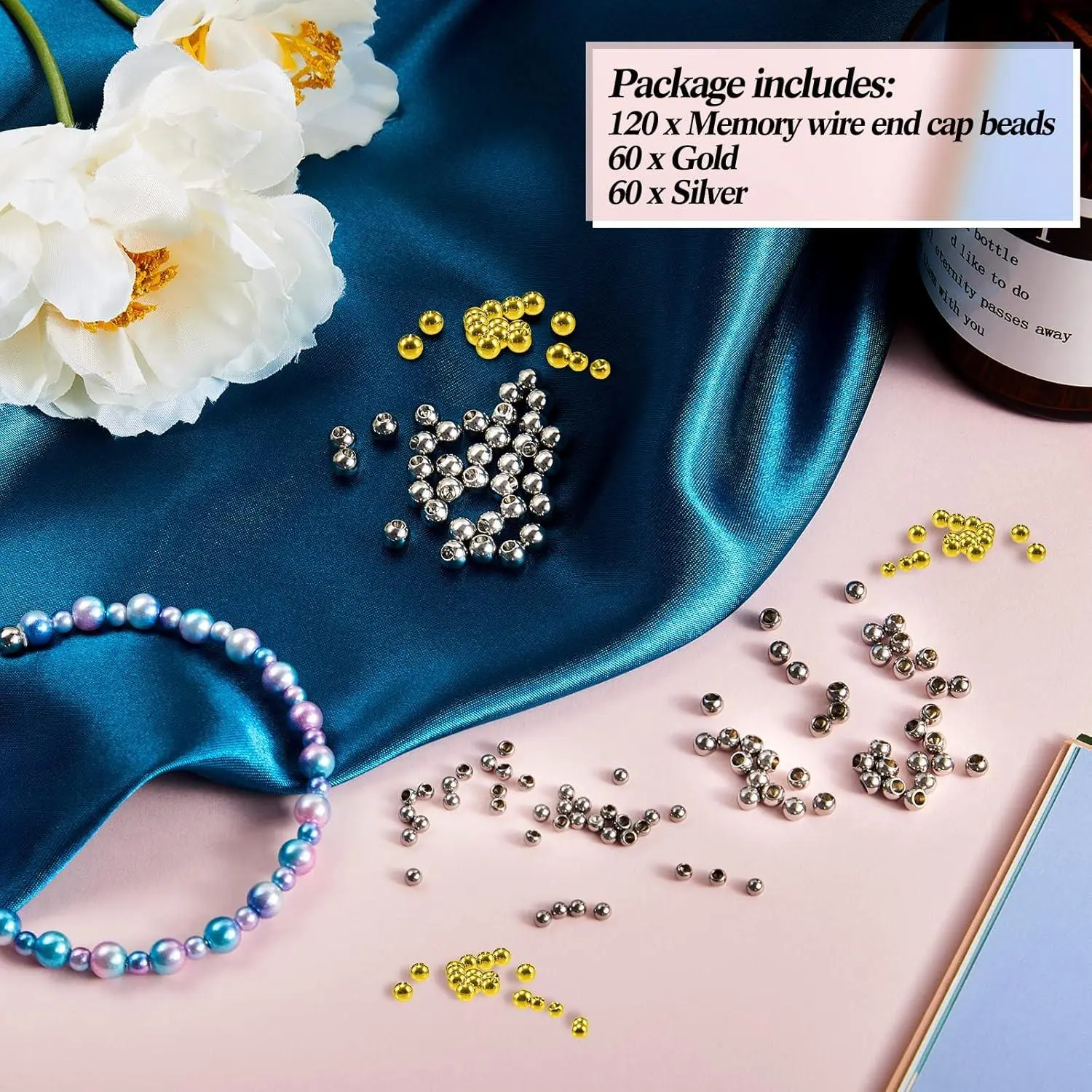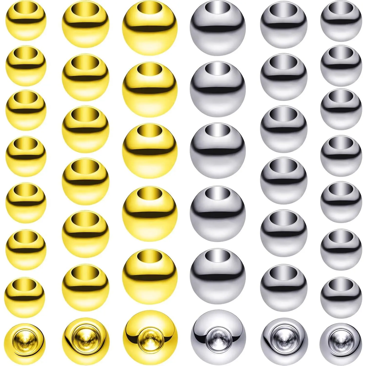 Canlierr 120 Pieces Memory Wire End Caps 3mm 4mm 5mm Stainless Steel Cord End Caps Half Drilled Beads for Earrings Necklace Bracelet Jewelry Making DIY Crafts(Gold, Silver)