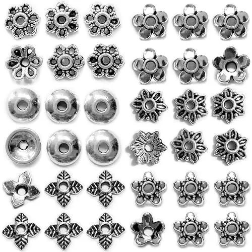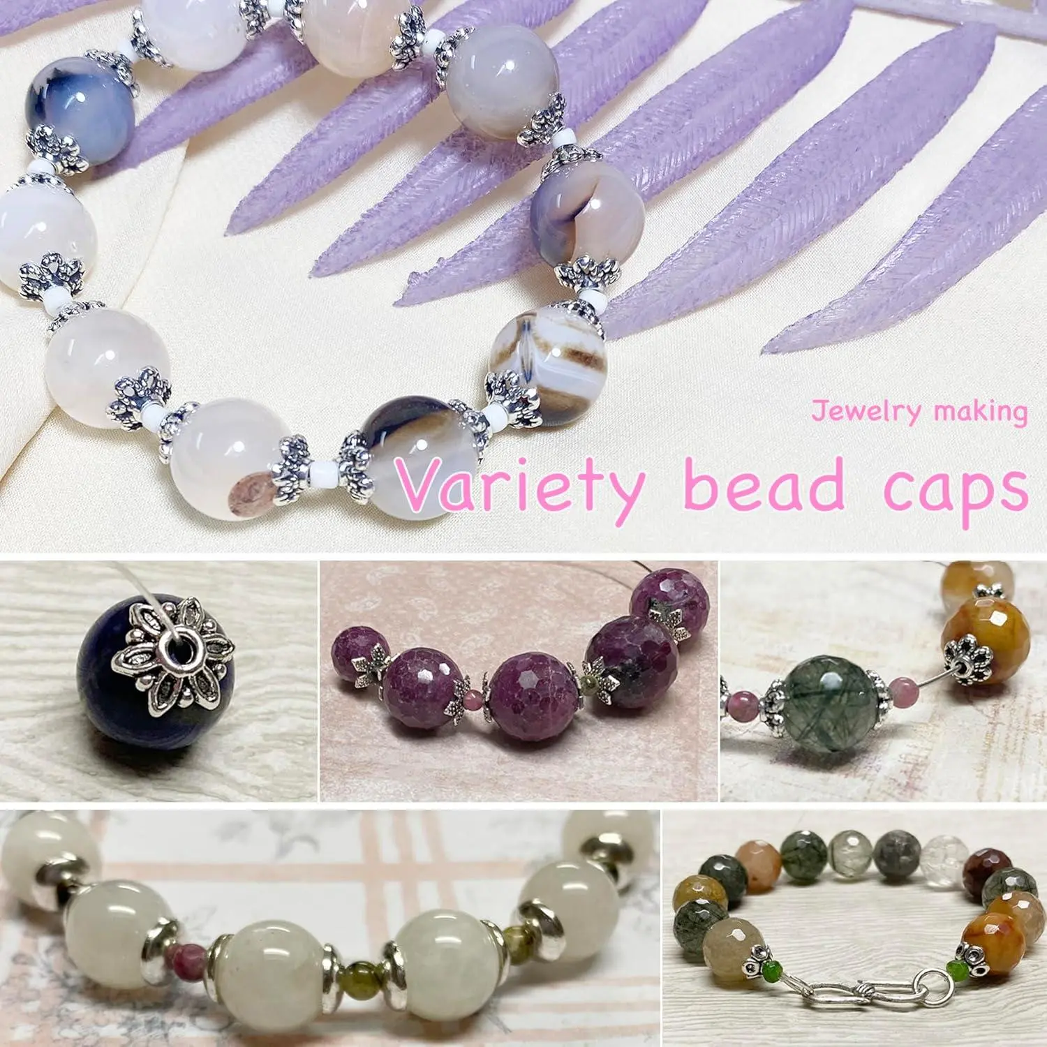Sparkling Charms Antique Spacer Bead Caps – Mixed Bali & Tibetan Style Metal End Caps for Jewelry Making, Fits 8–14mm Beads, Silver Finish for Bracelets Necklaces Earrings DIY Crafts (Silver, 600pcs)