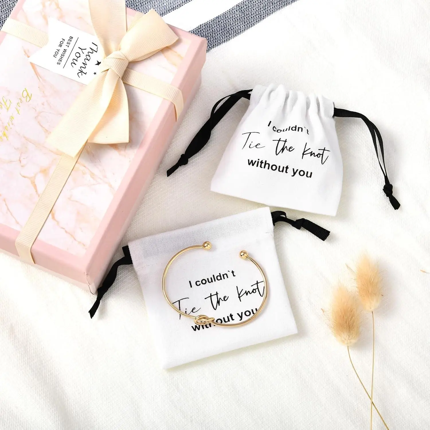 CEELGON 16 Pcs Jewelry Pouch Set of 8 Linen Cotton Small Drawstring Bags & Bridesmaid Knot Bracelet Jewelry Packaging Proposal Gift Bridal Party Favors (Gold)