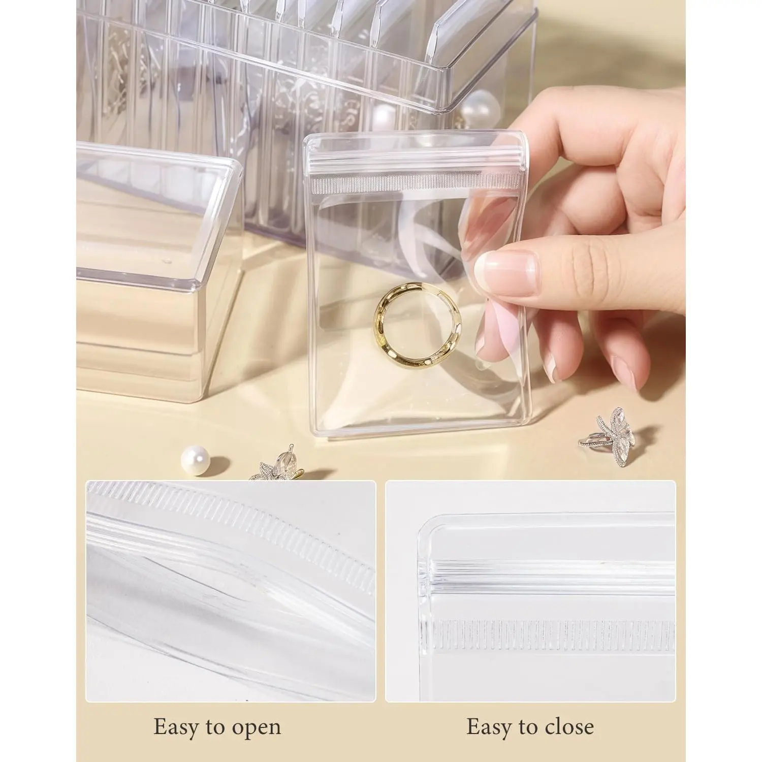 LETGO 120 pcs 3 Sizes Clear PVC Jewelry Bags Plastic Transparent Jewelry Pouches for Rings Earrings Packing Storage Pouch Anti Tarnish Zip Lock Bags for Holding Jewelries (Clear, 3 Sizes Mixed)