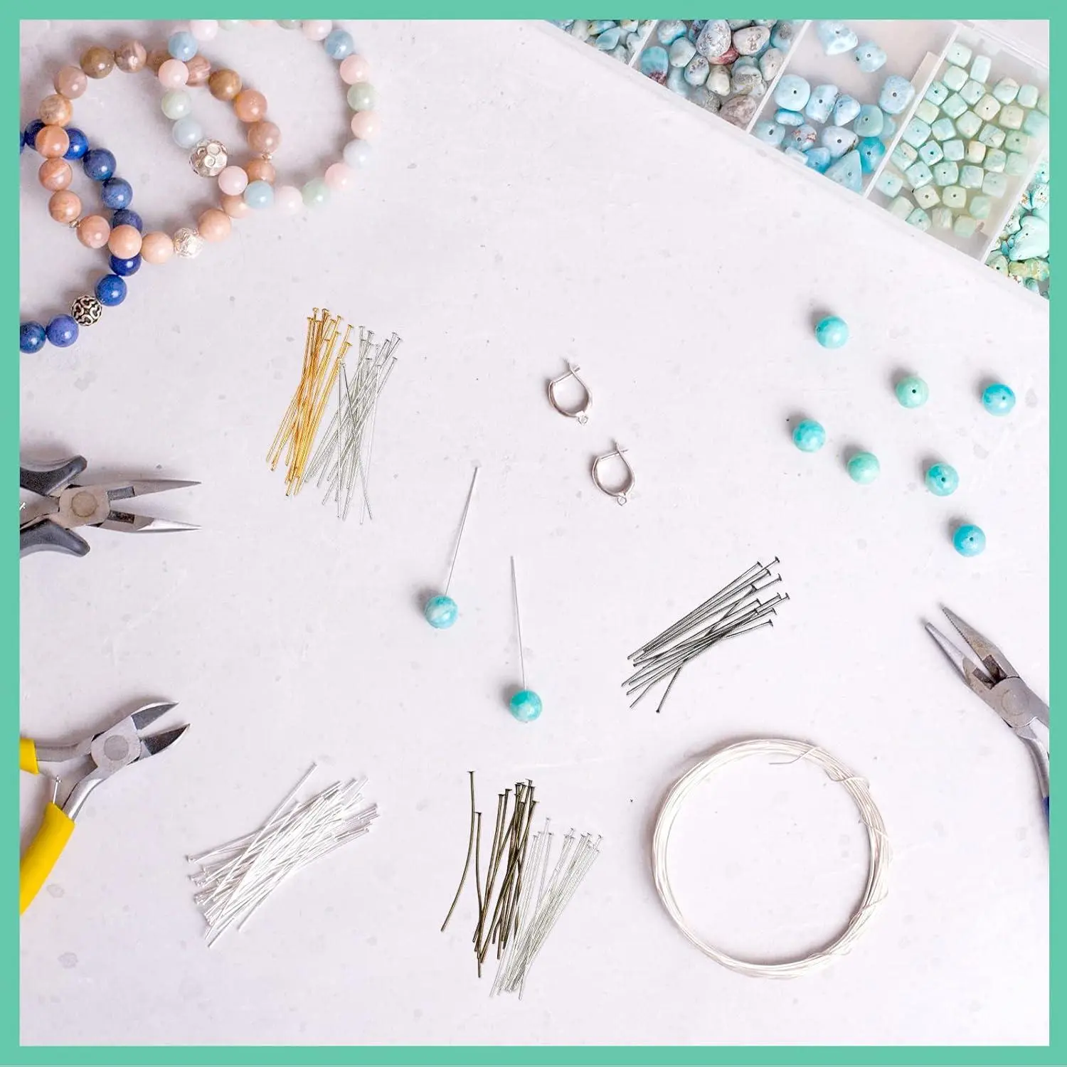 Sureio 500 Pcs Flat Head Pins for Jewelry Making, 2 Inch Straight Pins Metal Jewelry Making, Flat Head pin Jewelries Findings Eye Pin for DIY Craft Earring Bracelet Necklace Pendant(Mixed Colored)