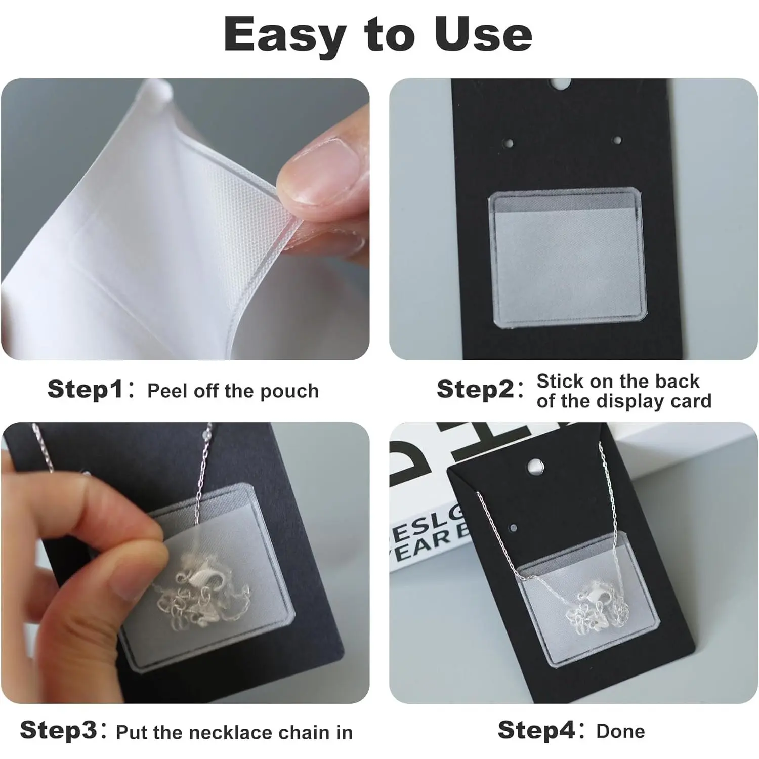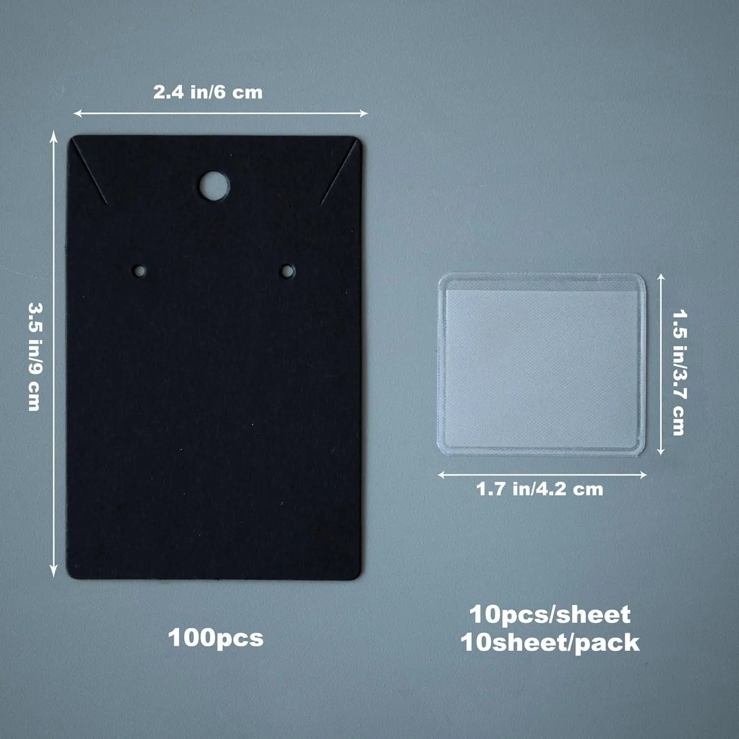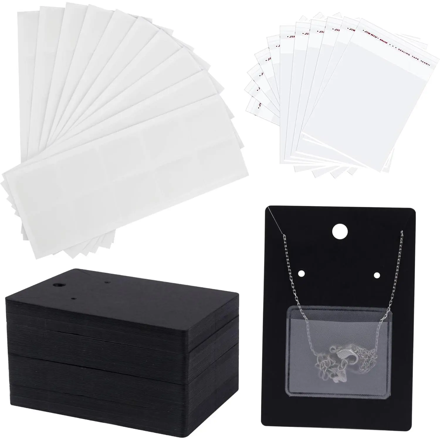 Temlum 100 Pcs Jewelry Display Cards with 100 Pcs Adhesive Pouches and Clear Bags, Necklace Earring Card Holders for Selling Jewelry Packaging Supplies (Black)
