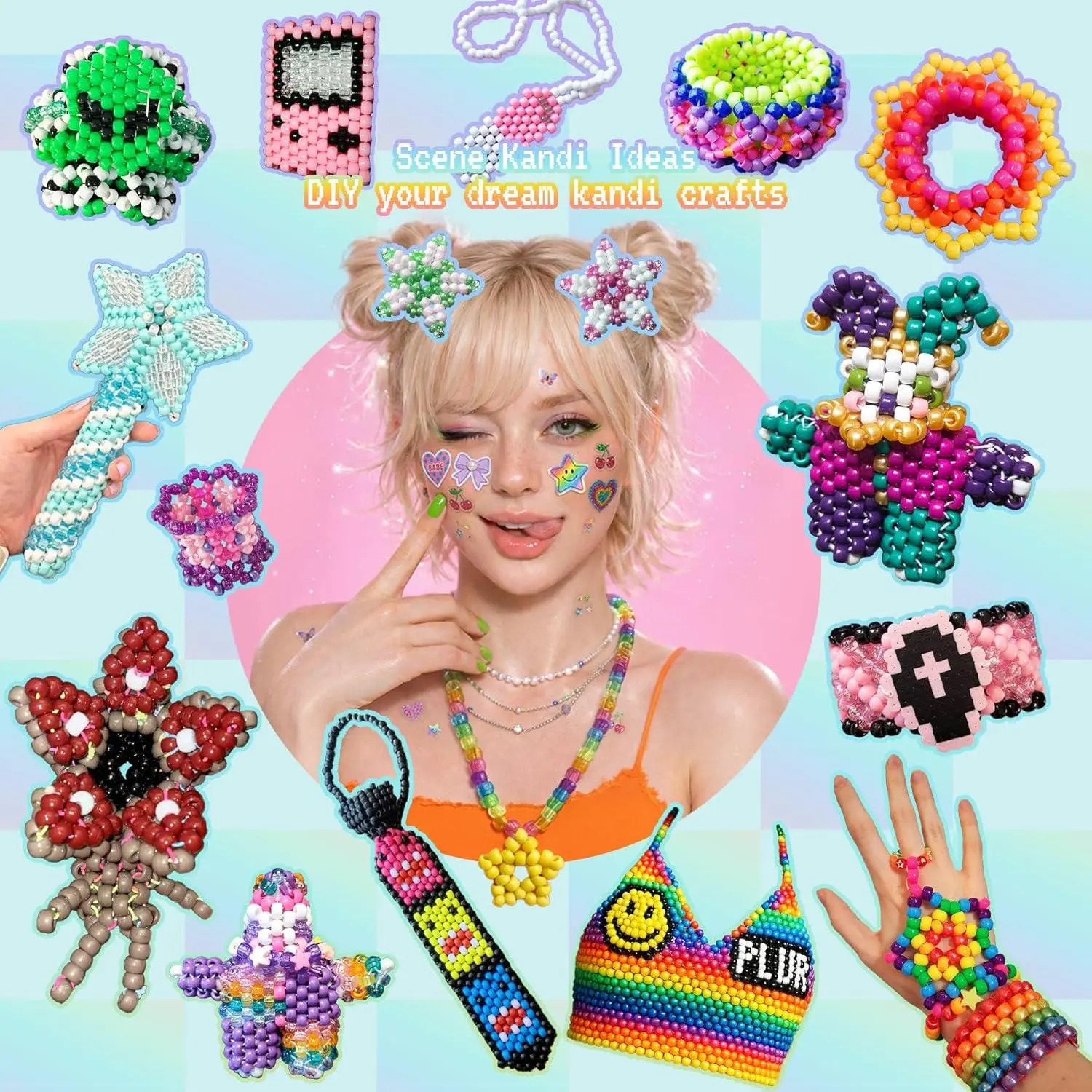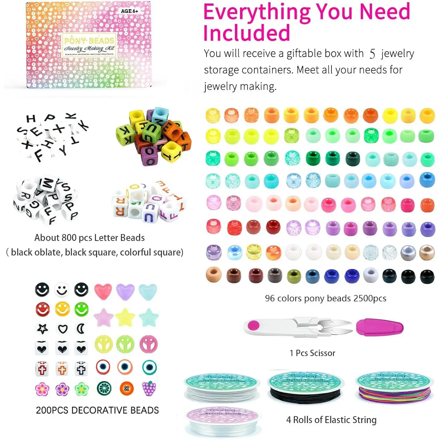 5 Boxes Bracelet Making Kit Pony Beads, 96 Colors 6x9mm 3500Pcs Kandi Rave Beads for Bracelets Friendship Plastic Bead with 800Pcs Letter Bead Arts and Crafts for Kids Adults Keychain Jewelry Making