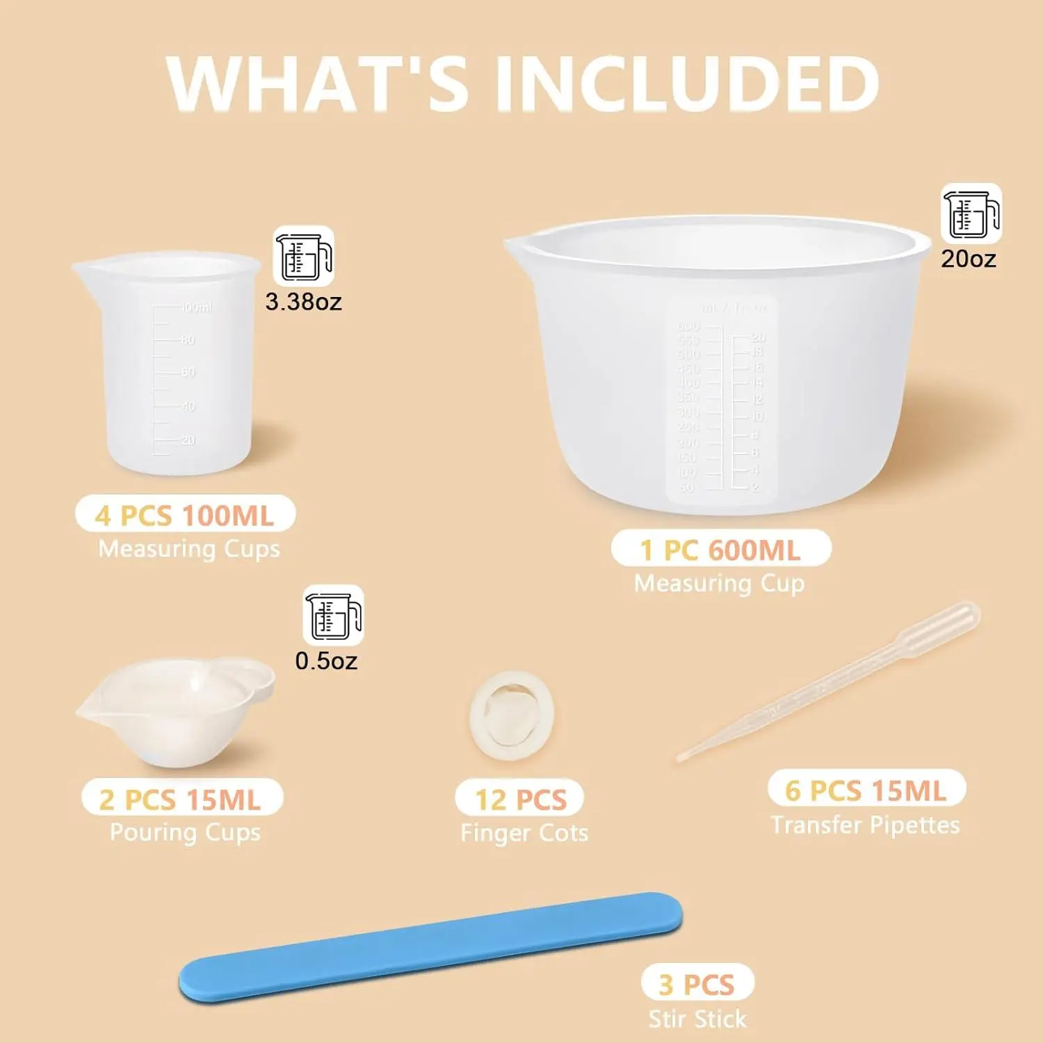 KISREL Silicone Measuring Cups for Resin, Resin Supplies with 600&100ml Cups, Resin Mixing Cups, Silicone Stir Sticks, Epoxy Mixing Cup