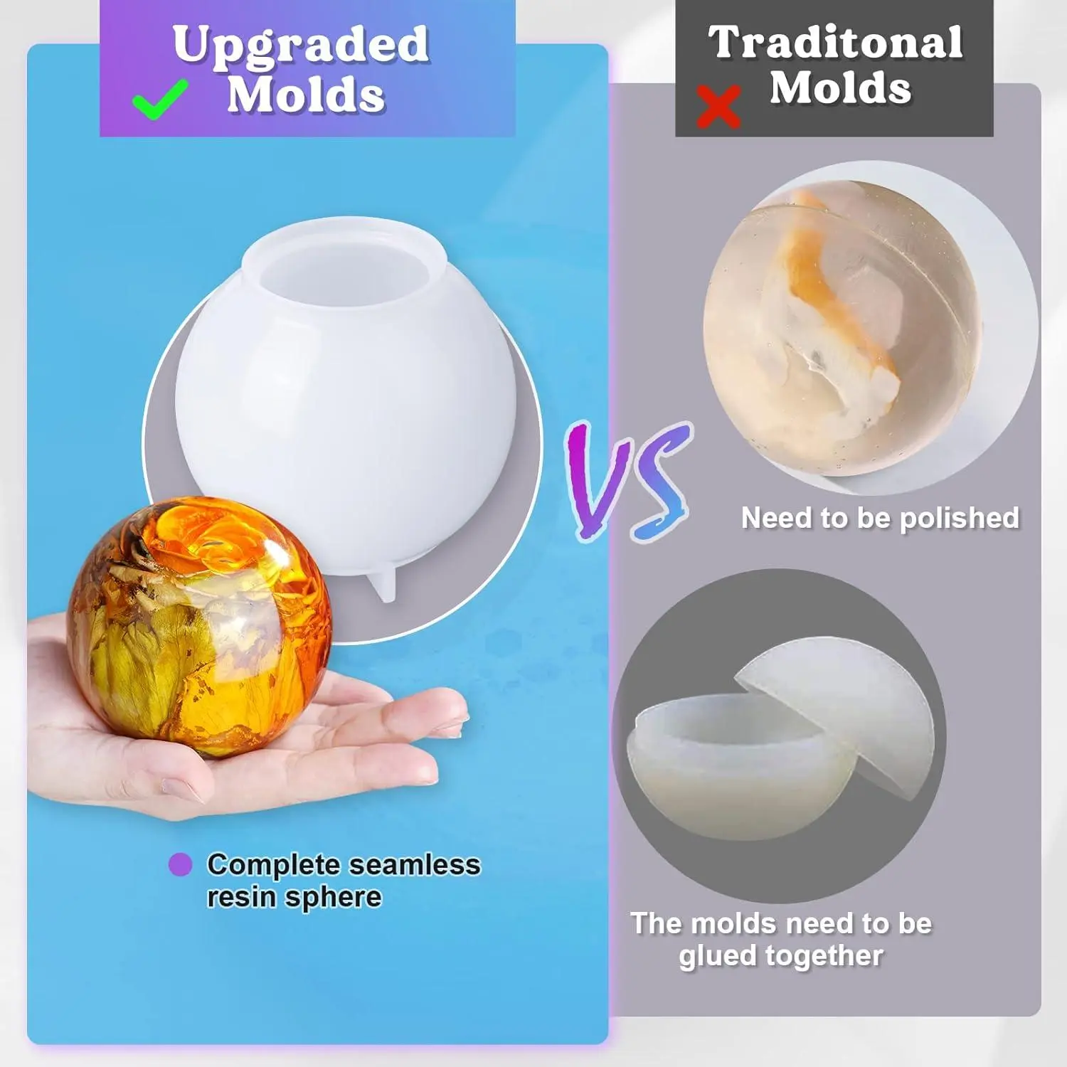 LET'S RESIN 9 Pcs Sphere Silicone Molds for Resin, Upgraded Seamless 3D Sphere Resin Molds Silicone,Large Round Ball Epoxy Resin Molds for Flowers Preservation,Resin Casting, Soap, Candle