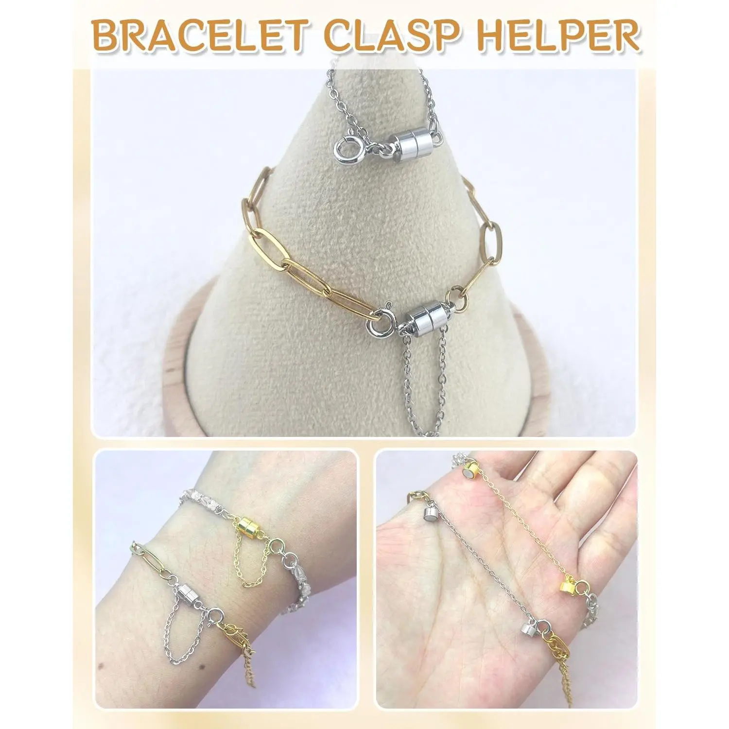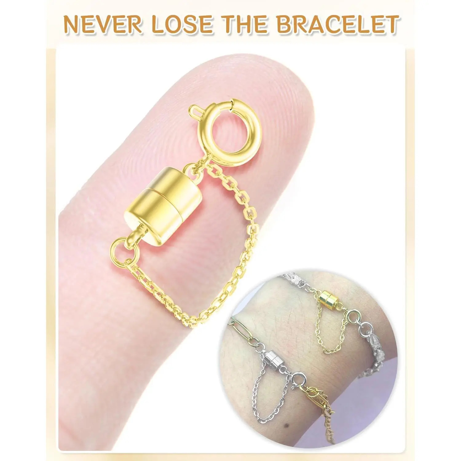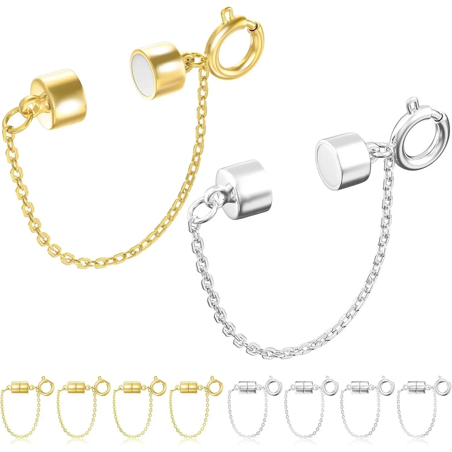 8Pcs Magnetic Bracelet Clasps and Closures with Safety Chain Never Fall Gold and Silver Bracelet Extender Converter Magnetic Clasps for Women