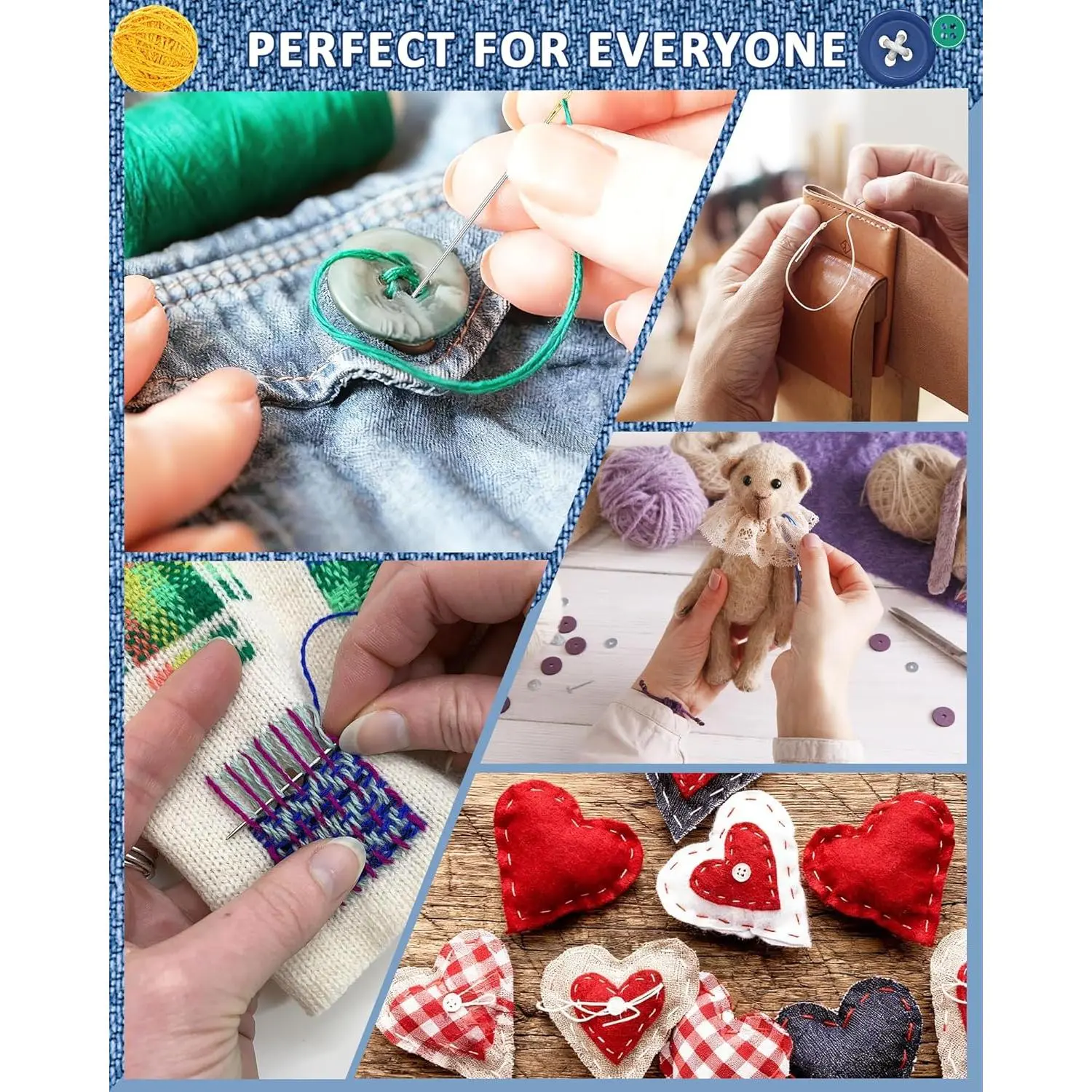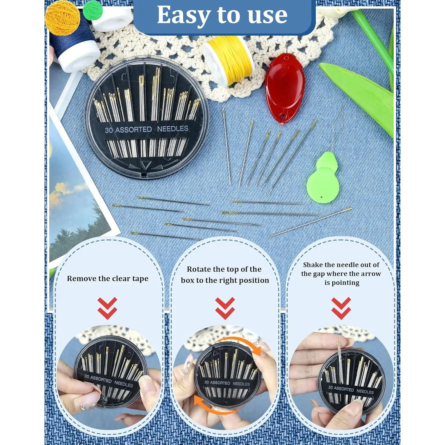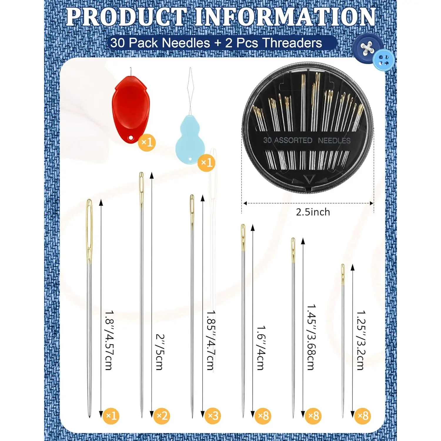 FIVEIZERO 30-Count Steel Needles for Hand Sewing, 6 Sizes Large Eye Embroidery and Hand Quilting Needles Kit with Threaders for Art & Craft Projects