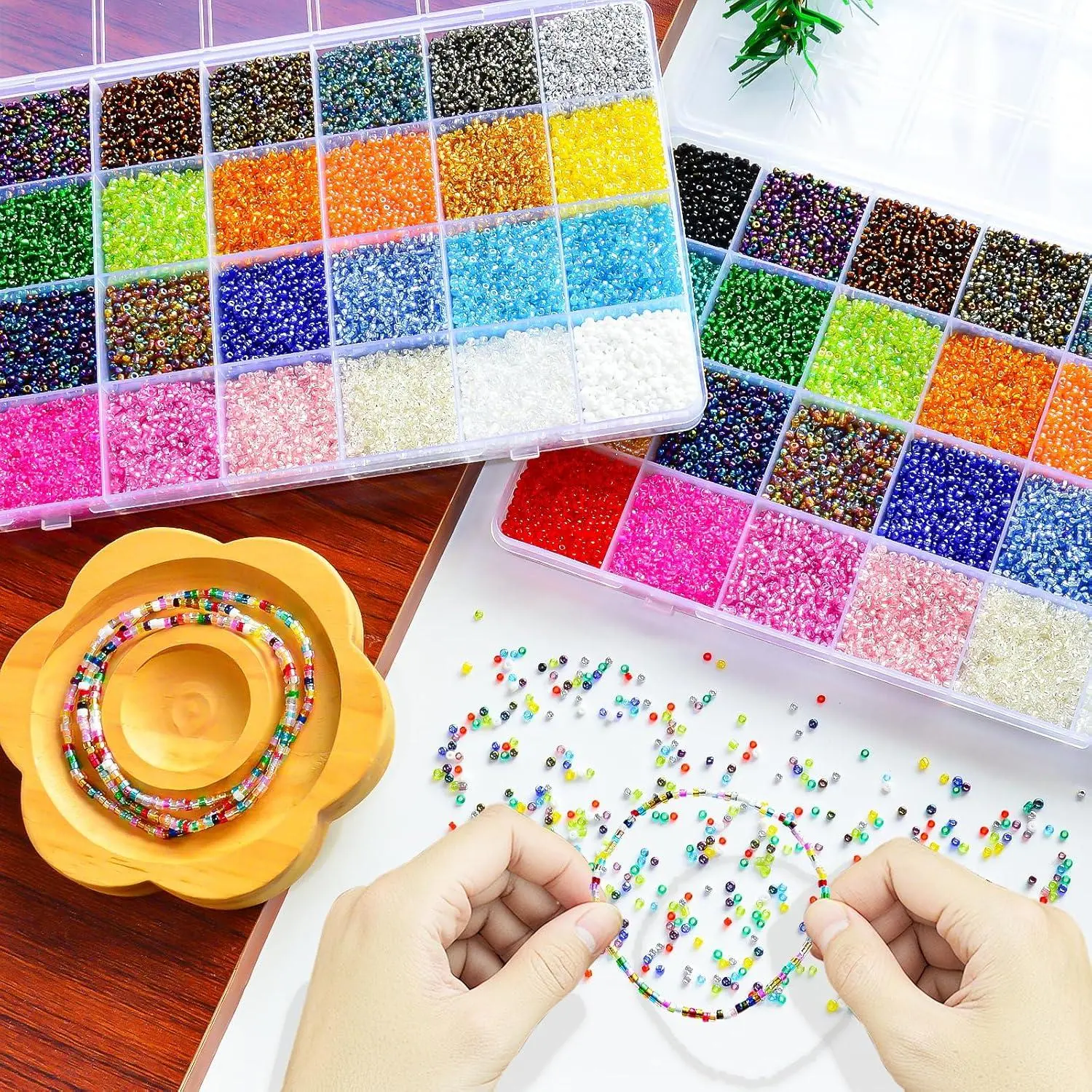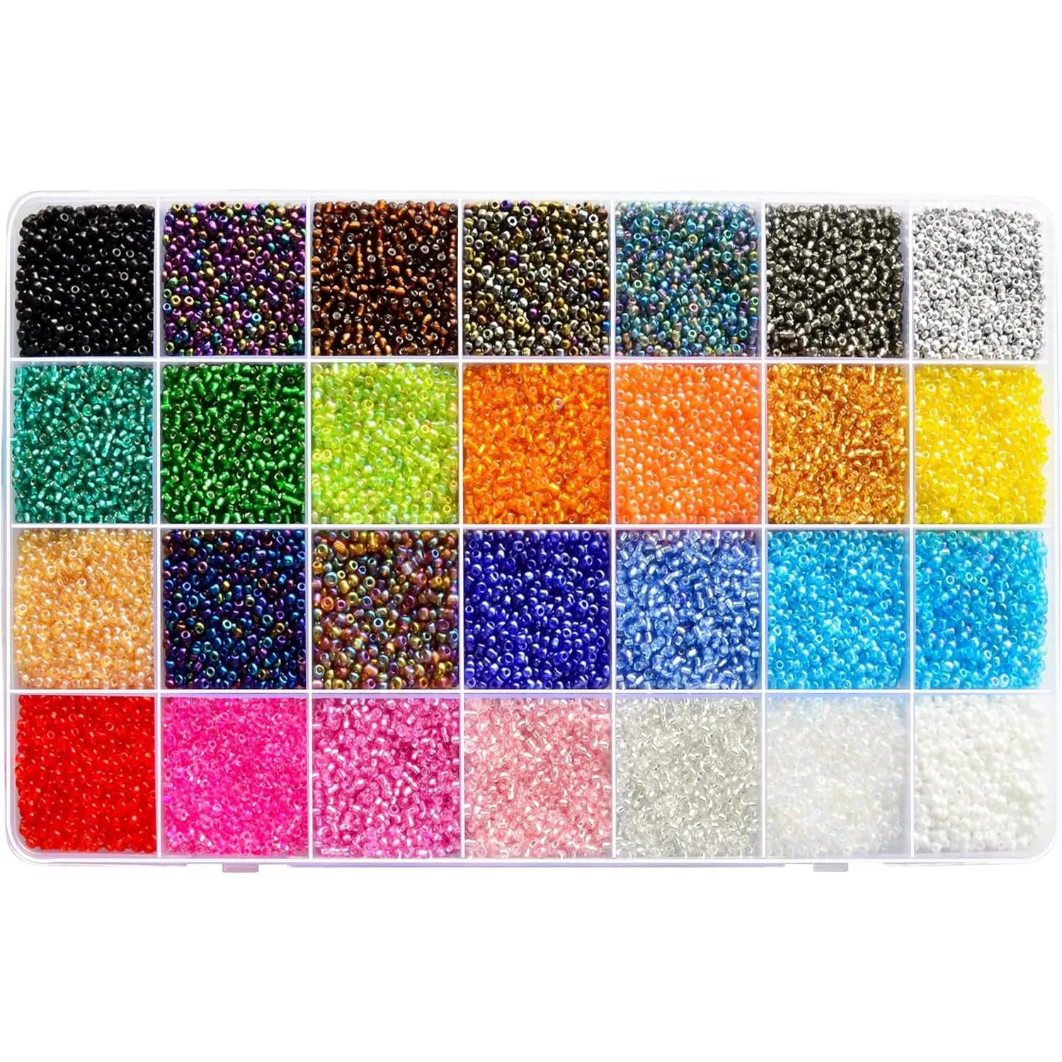 26000PCS 2mm Glass Seed Beads Kit – 28 Assorted Colors Small Beads Set for Jewelry Making, DIY Bracelets, Necklaces, Earrings, Craft Projects