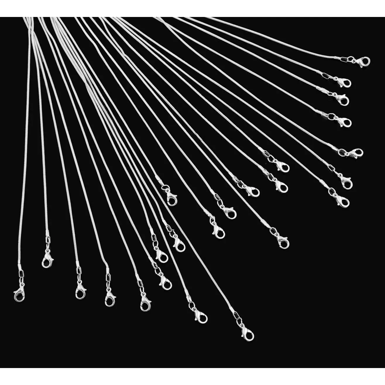 24pcs 18 Inch 925 Silver Plated 1.2mm DIY Snake Chain Charms Link Necklace With Lobster Clasps for Jewelry Making