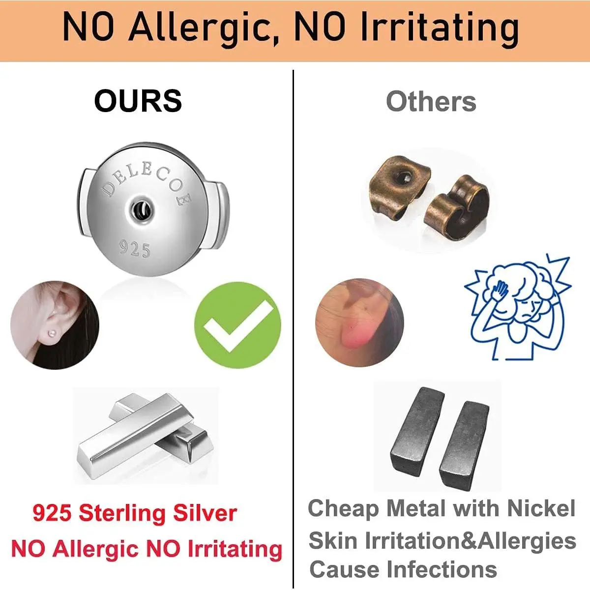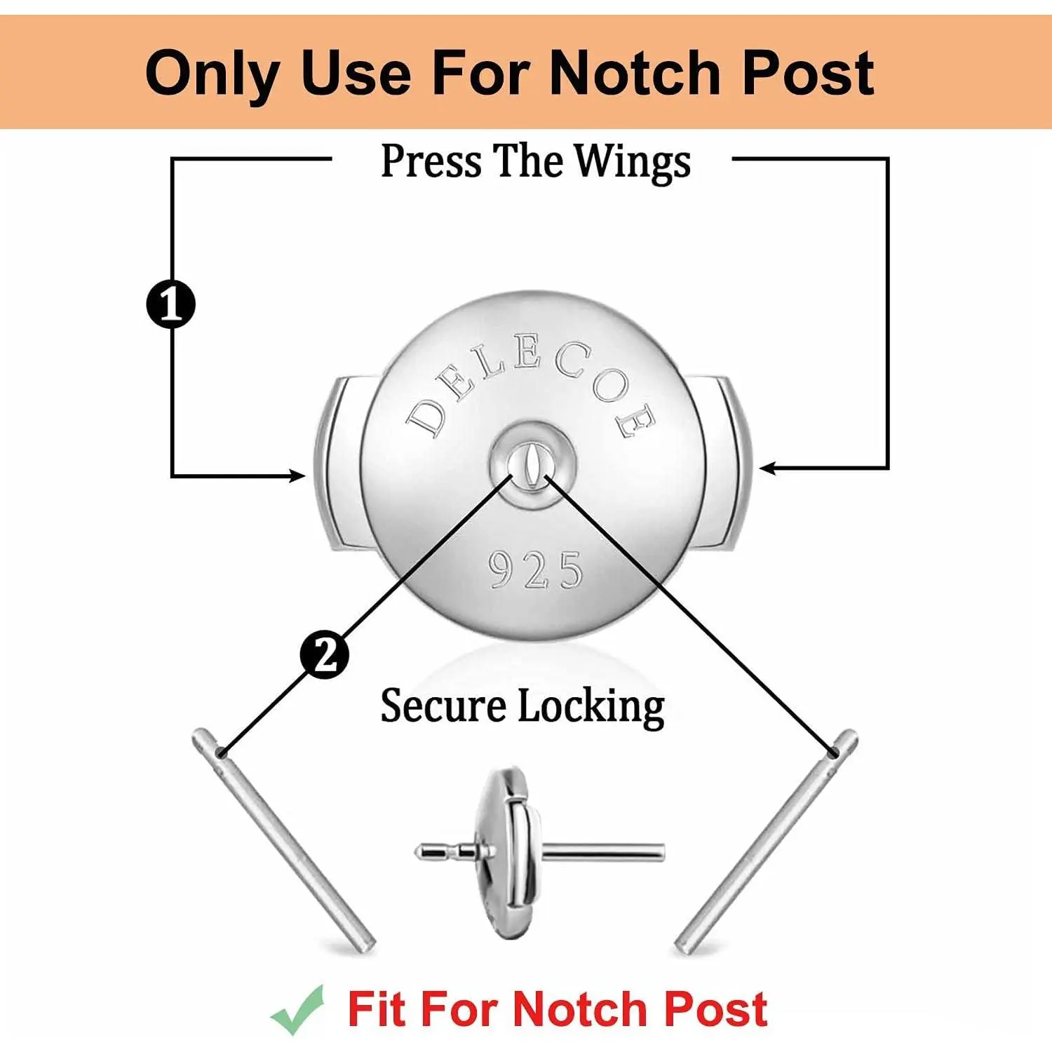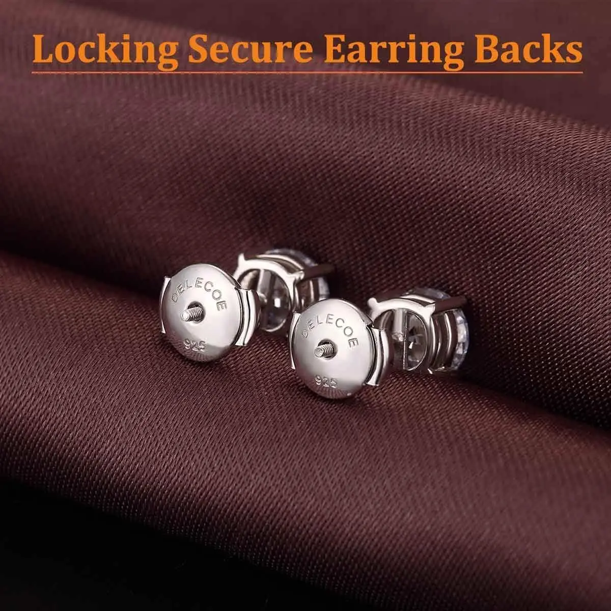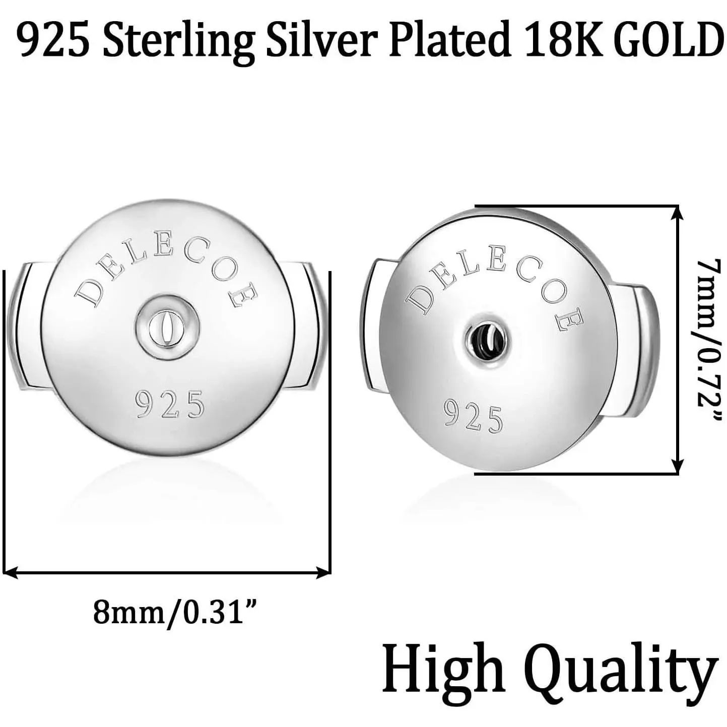 2 Paris Sterling Silver Locking Earring Backs Replacements for Diamond Studs, 18K White Gold Plated Screw Earring Backs, Secure Hypoallergenic Secure Earring Backs, No Fading Comfort Earring Backs