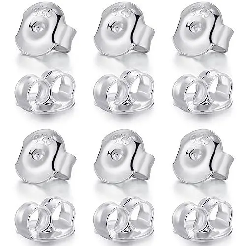12PCS Real 925 Silver Earring Backs Replacements, 18K White Gold Plated Hypoallergenic , Secure Ear Locking for Stud Nut for Posts, 6mm