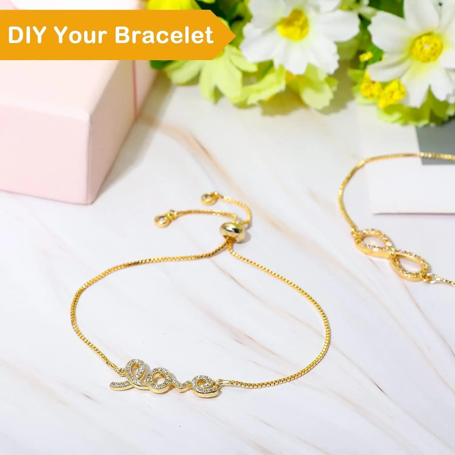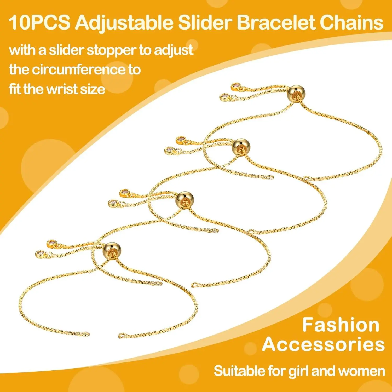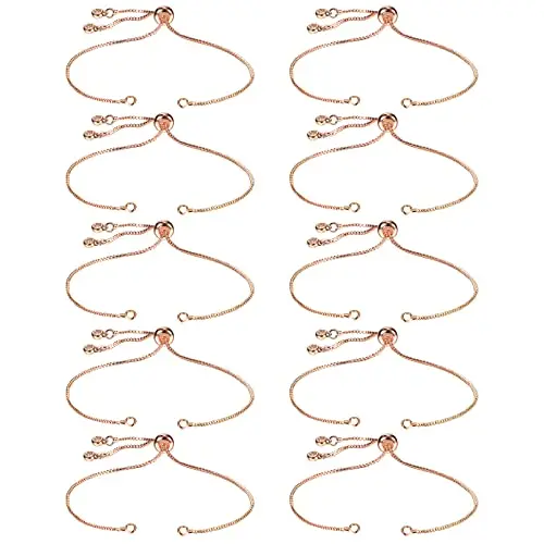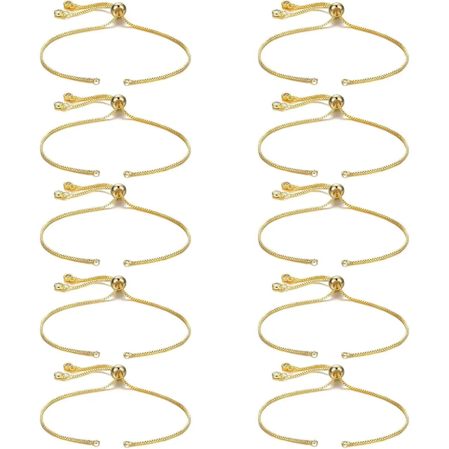 Sureio 10 Pieces Adjustable Slider Bracelet for Jewelry Making Bracelet Chains for DIY Jewelry Making Findings Extender Chains with Rhinestones Ends for Woman Girl(Gold)