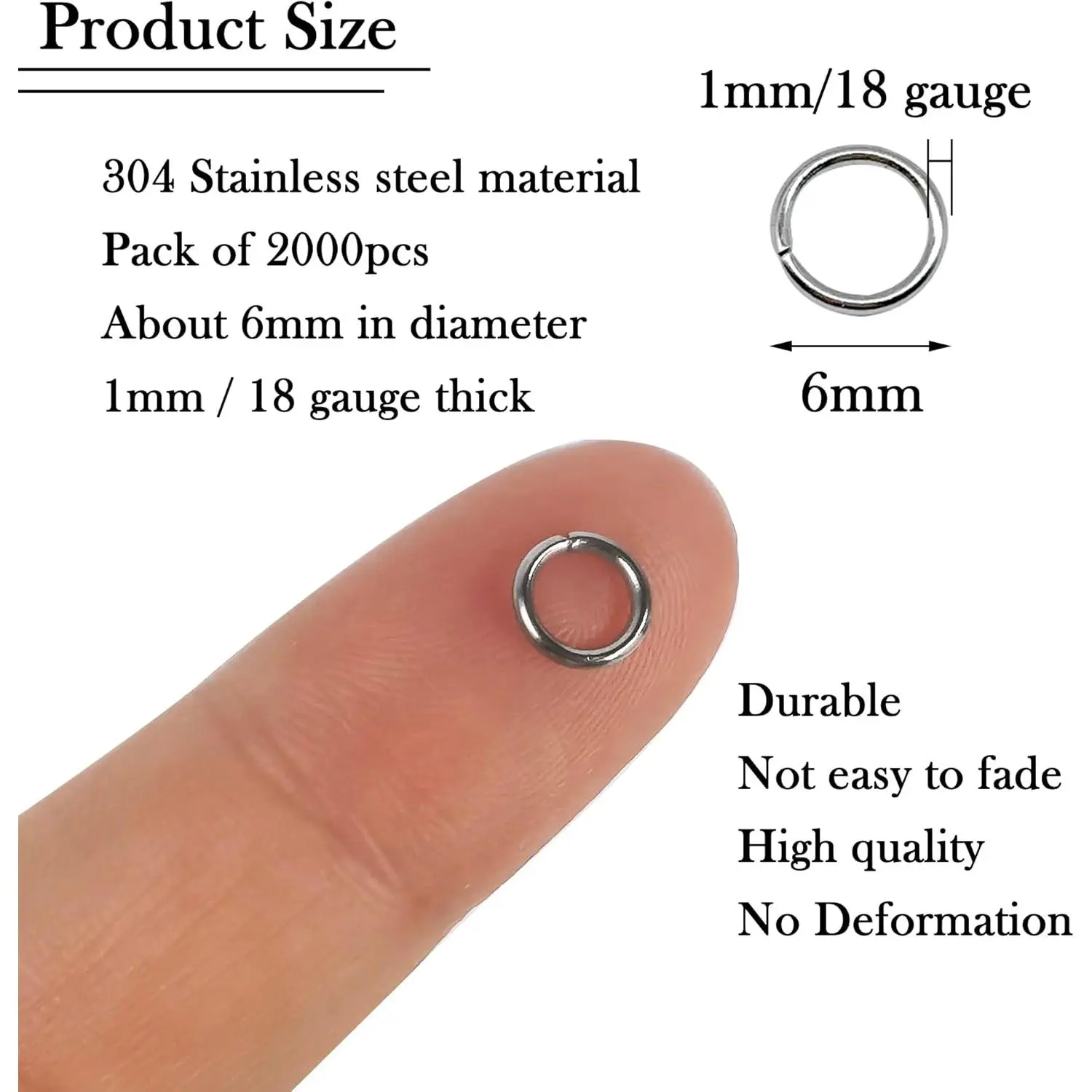 2000Pcs 6mm Stainless Steel Jump Rings 18 Gauge Metal O Rings Close but Unsoldered Single Loop Connector Rings for Jewelry Necklaces Bracelet Earrings Keychain DIY Making