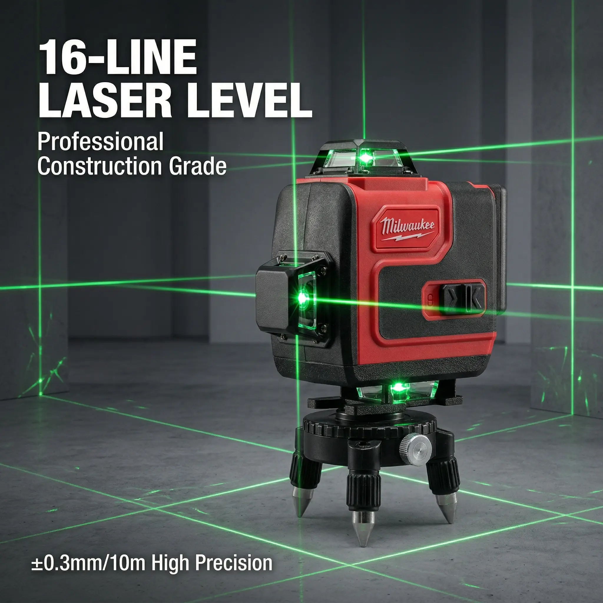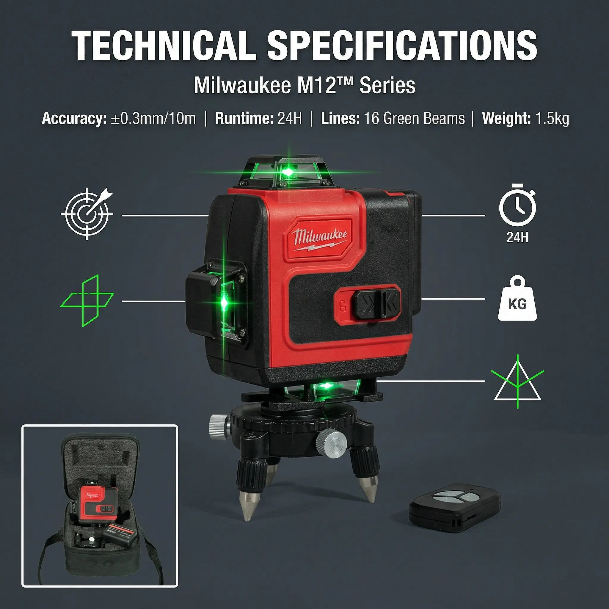 Milwaukee M12 16 Line Cross Laser Level for Construction Layout With High Accuracy