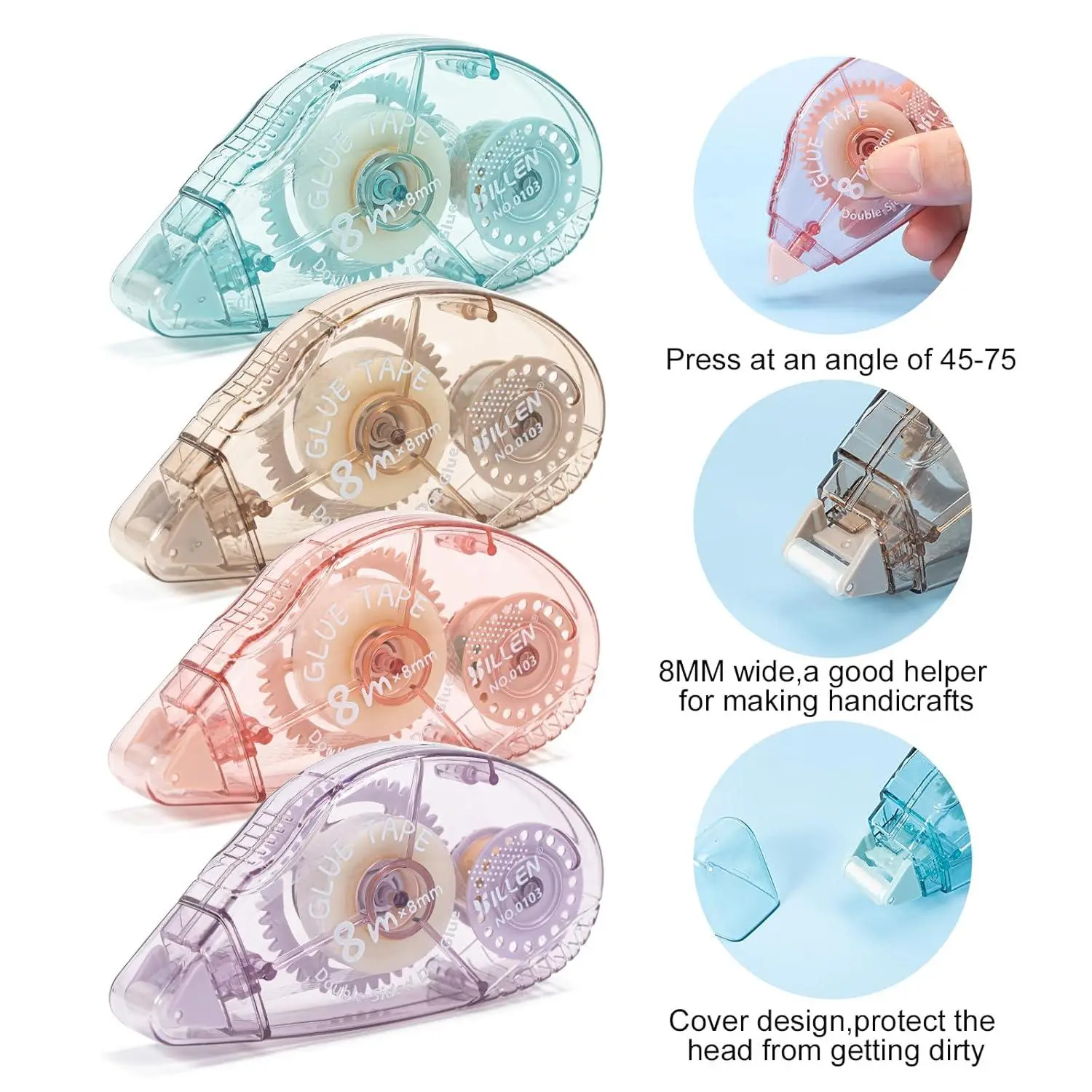 4 Pack Double Sided Tape Roller, Scrapbook Supplies, Glue Tape Roller for Crafts, Double-Sided Adhesive Tape Runner for Scrapbooking, School Office Journaling Supplies (0.31 in X 26.25 ft)