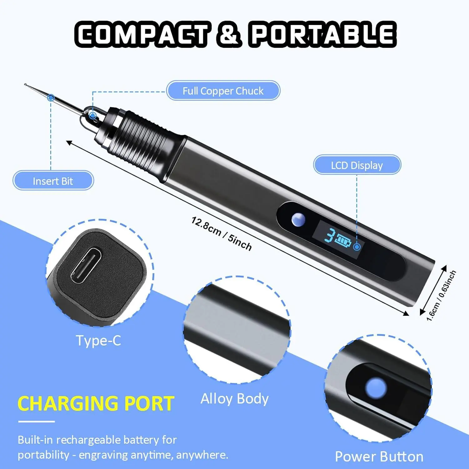 Cordless Engraving Pen Kit with Carrying Case, Rechargeable Electric Engraver Tool with 43 Accessories, 3-Speed Portable DIY Rotary Tool for Jewelry, Metal, Glass, Stone, Wood, Plastic, DIY Gift