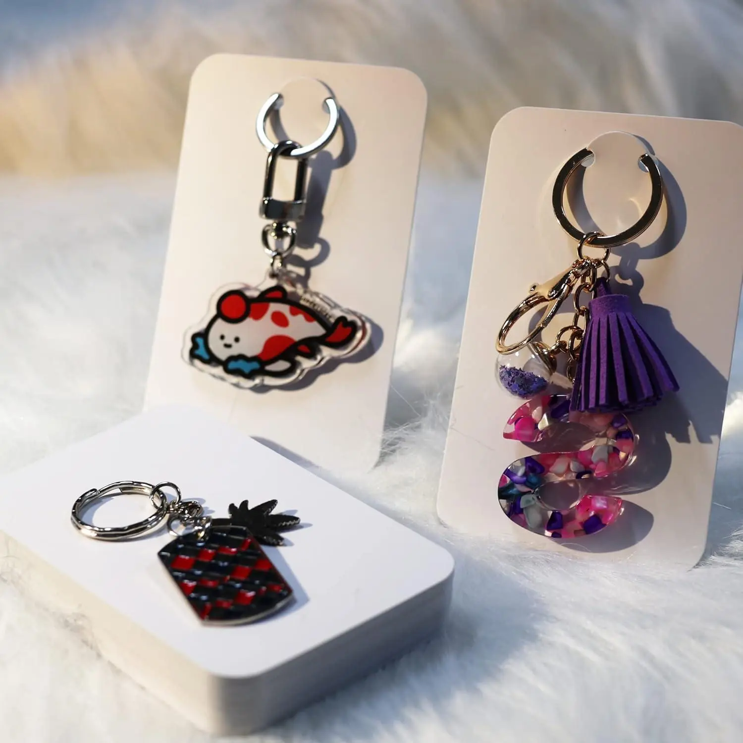 Temlum 100 Pcs Keychain Display Cards with Self-Sealing Bags, 3'' x 4.7'' Keychain Cards Holder for Display Keyring Cards Jewelry Packaging Supplies (White)
