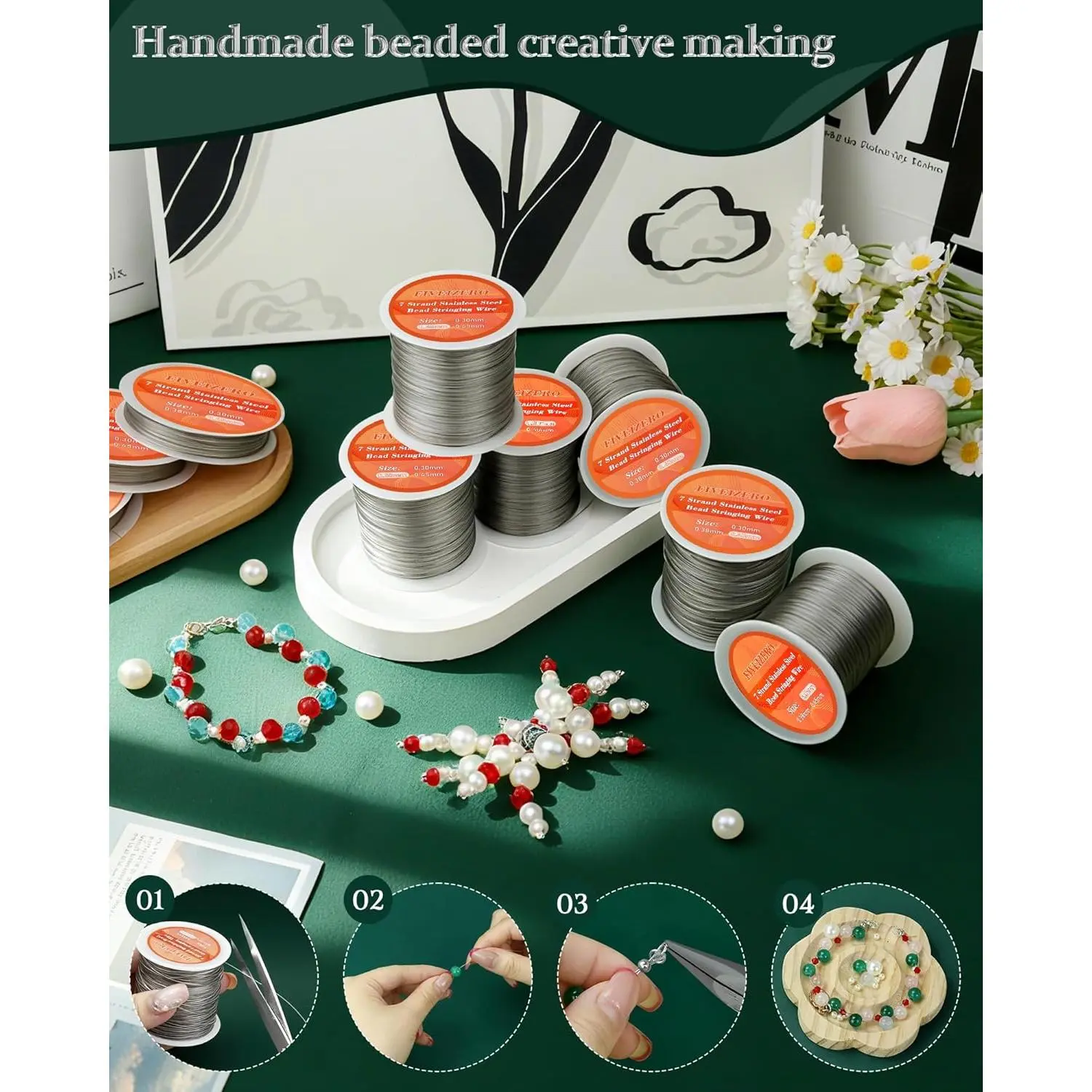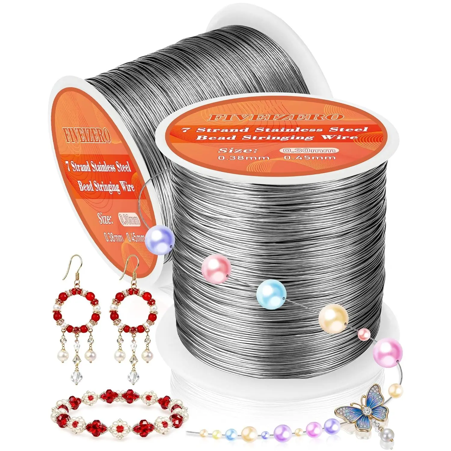FIVEIZERO 656FT 0.3mm Stainless Steel Beading Stringing Wire, 2 Rolls 7 Strand Jewelry Wire for Jewelry Making Supplies, Threading Necklace Bracelet Crafts