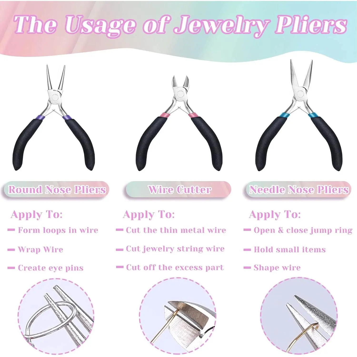 Jewelry Pliers Set, Paxcoo 3Pcs Jewelry Making Tools Kit includes Needle Nose Pliers, Round Wire Cutters for Supplies, Wrapping, DIY Crafts, Beading