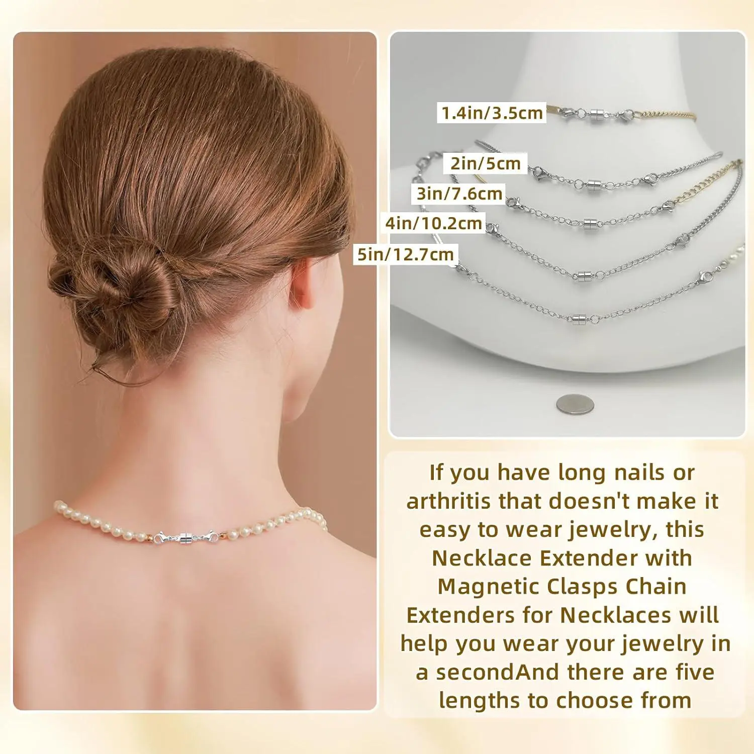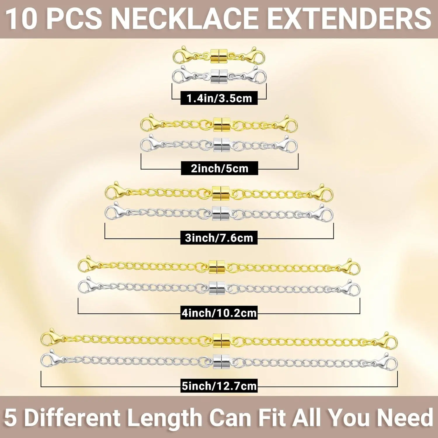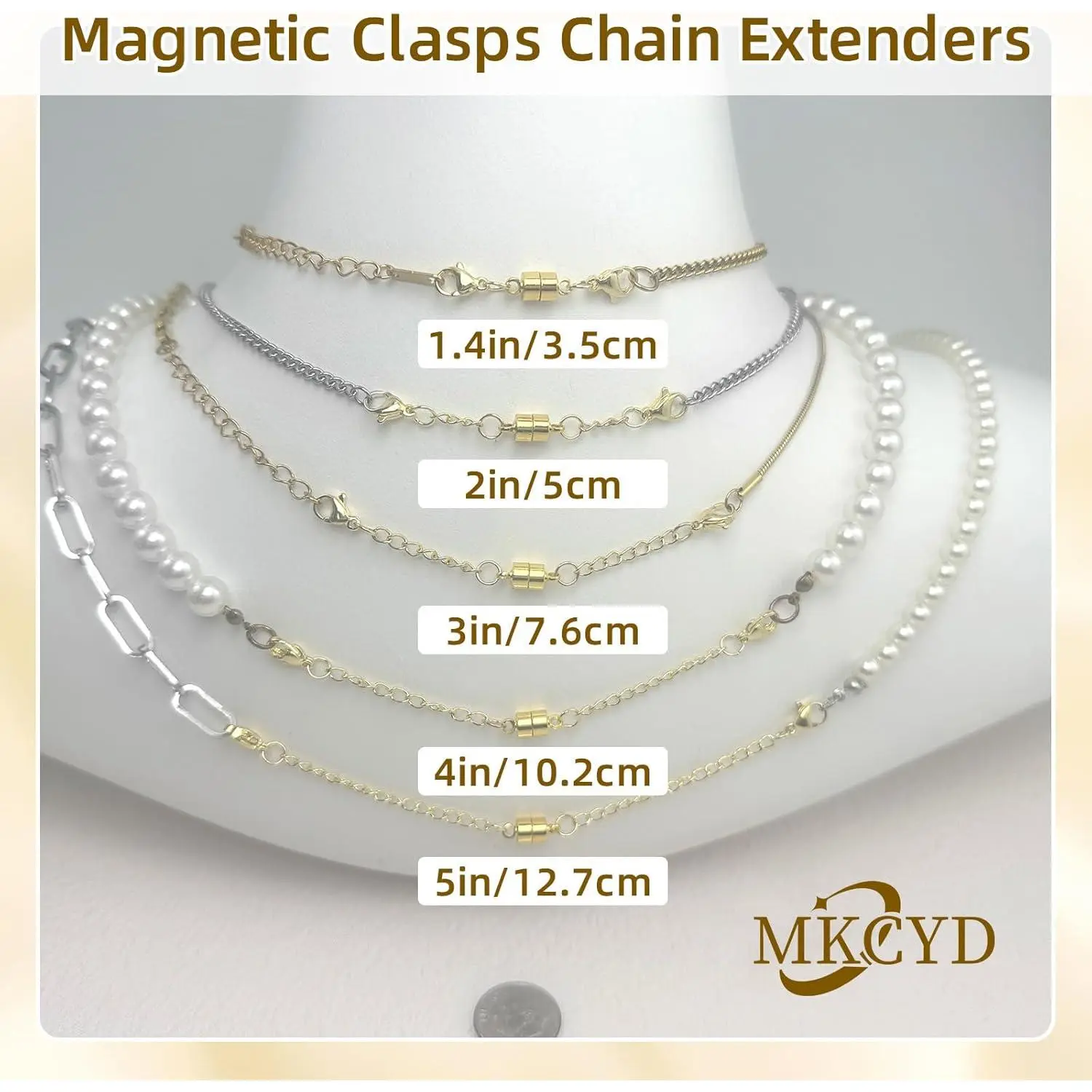 MKCYD Necklace Extender with Magnetic Clasps, Gold and Silver Magnetic Necklace Clasps and Closures with Necklace Extenders for Women