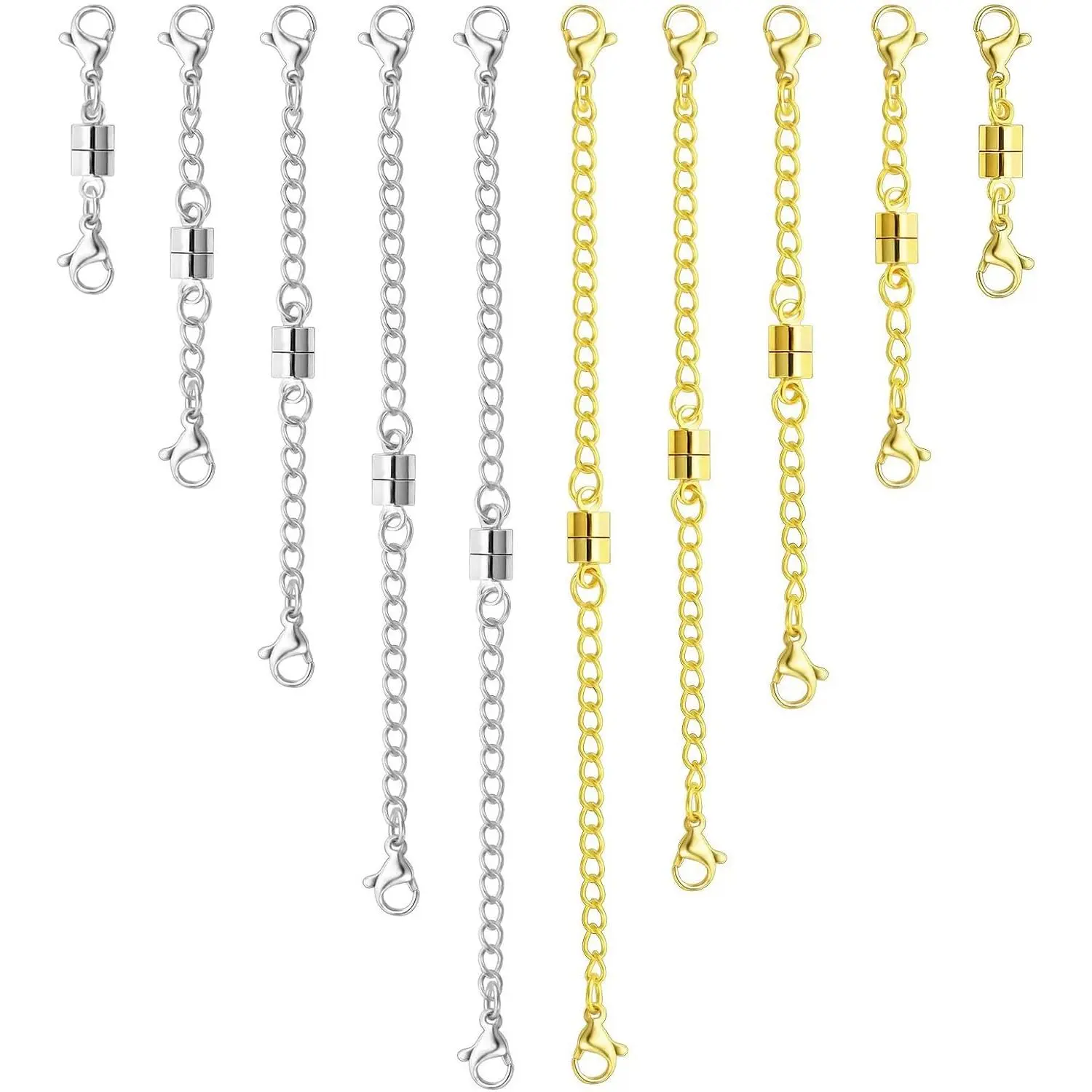 12 Pack Magnetic Necklace Clasps and Closures Necklace Jewelry Extender with Strong Magnet Magnetic Gold and Silver Plating Gift Stainless Steel Charm