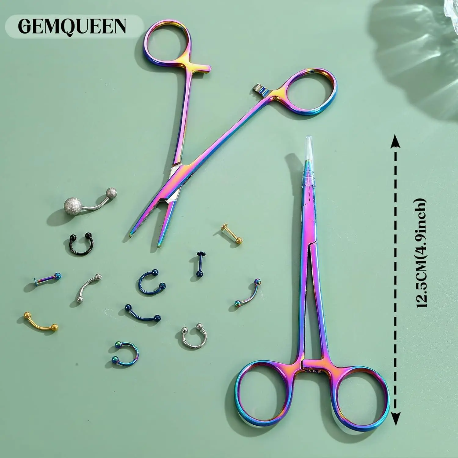 GEMQUEEN Piercing Taper Pliers Ball Grabber Tool for Changing Jewelry - Curved and Straight Forceps Stainless Steel 14G 16G 18G Flat Back Earrings Insertion Tool Body Piercing Kit for Ear Nose Lip