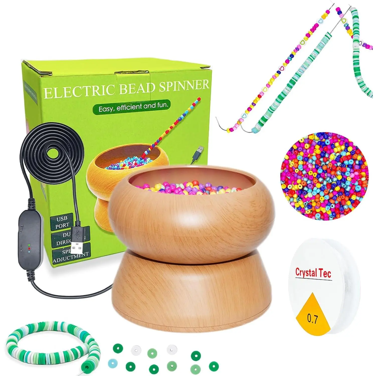Xmada Electric Bead Spinner - Clay Bead Spinner with 2PC Beading Needles and Seed Beads, Waist Beads Kit, Bead Spinner for Jewelry Making, Electric | Speed Adjustment Beading Tools (Original)
