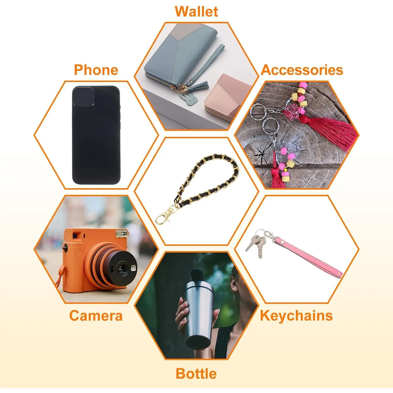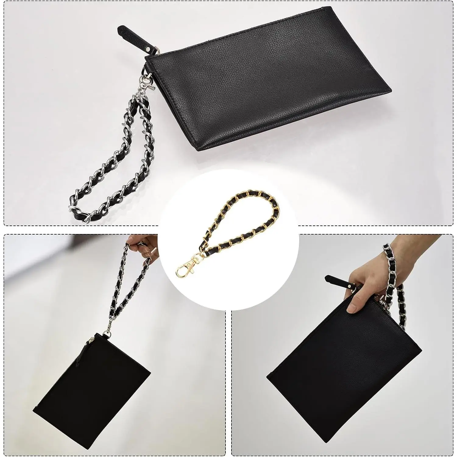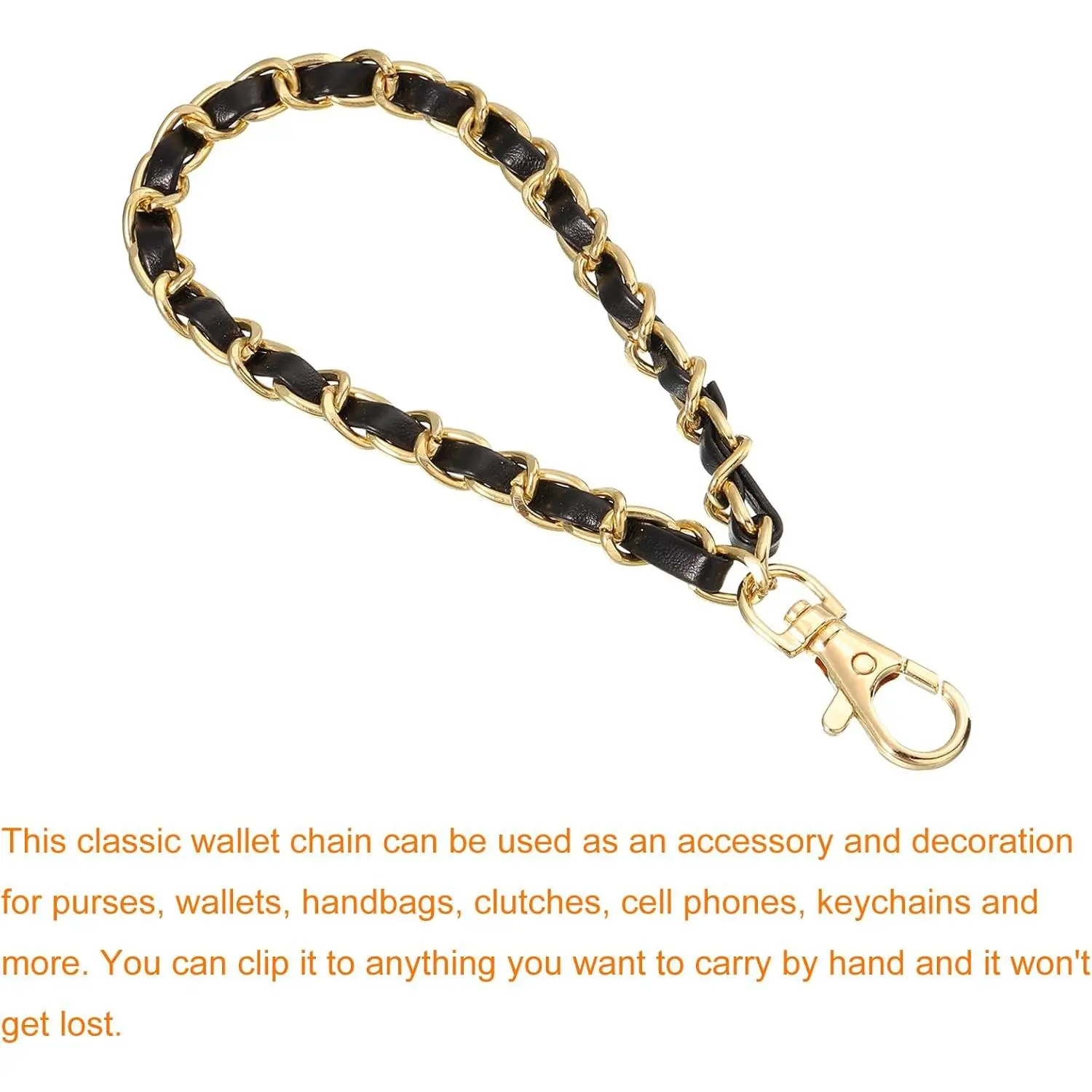 uxcell Leather Wristlet Strap, 7" Hand Wrist Lanyard Leather Wristlet Strap Replacement Wrist Strap for Clutch Wallet Keychain Bags DIY, Gold+Black
