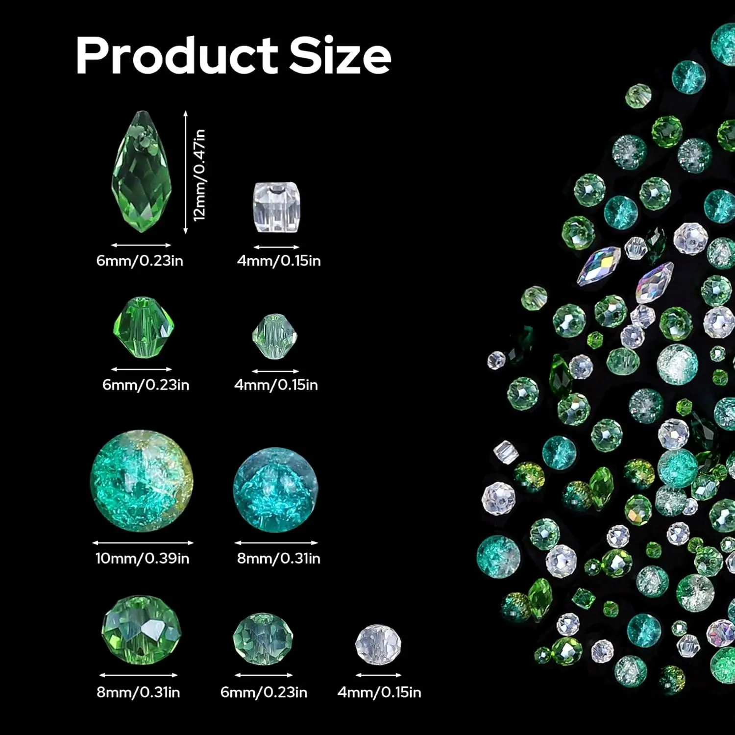 1000pcs Glass Beads for Jewelry Making Colorful Rainbow Craft Crystal Beads with Loose Beads Sparkly Beads for DIY Necklace Bracelet Earring(Green)