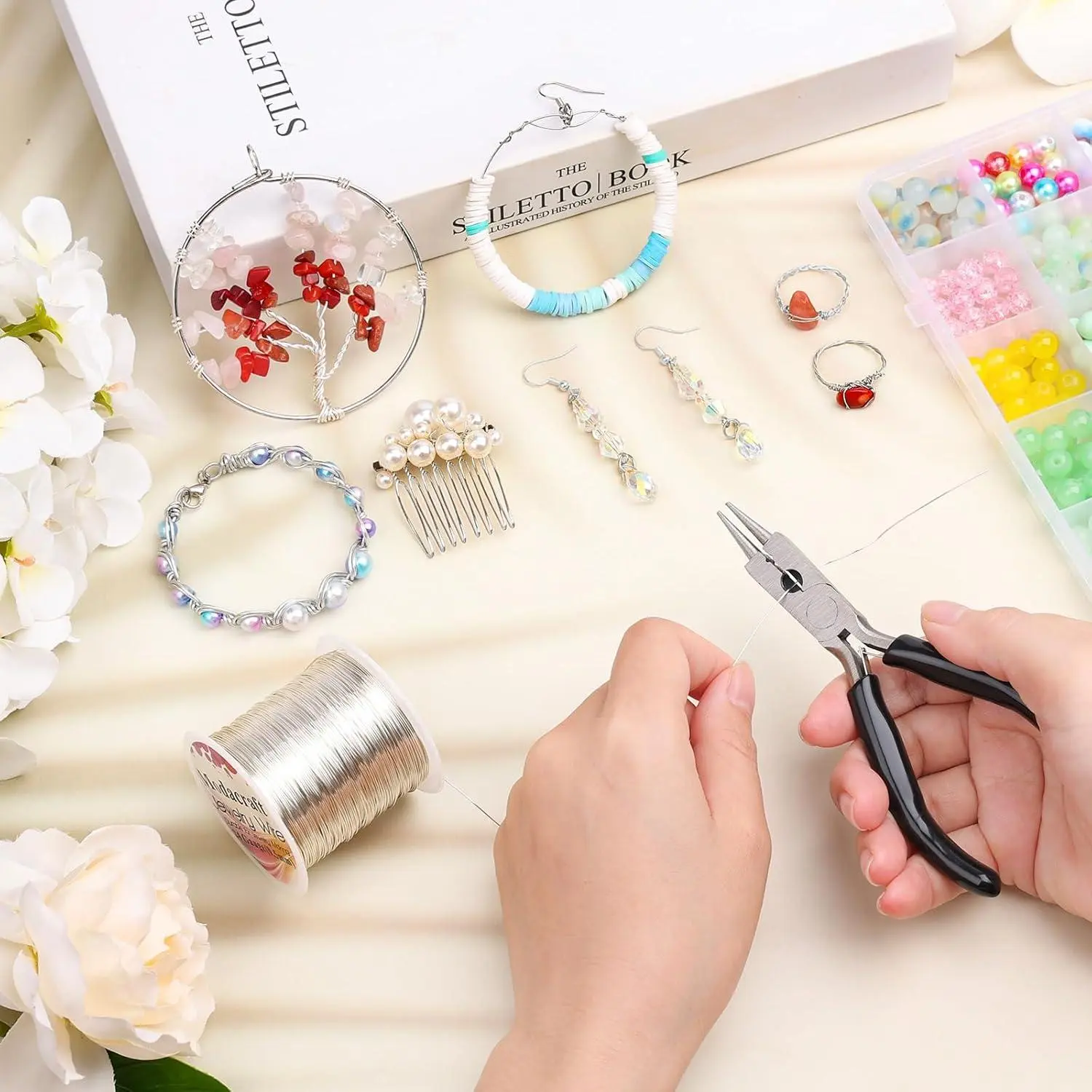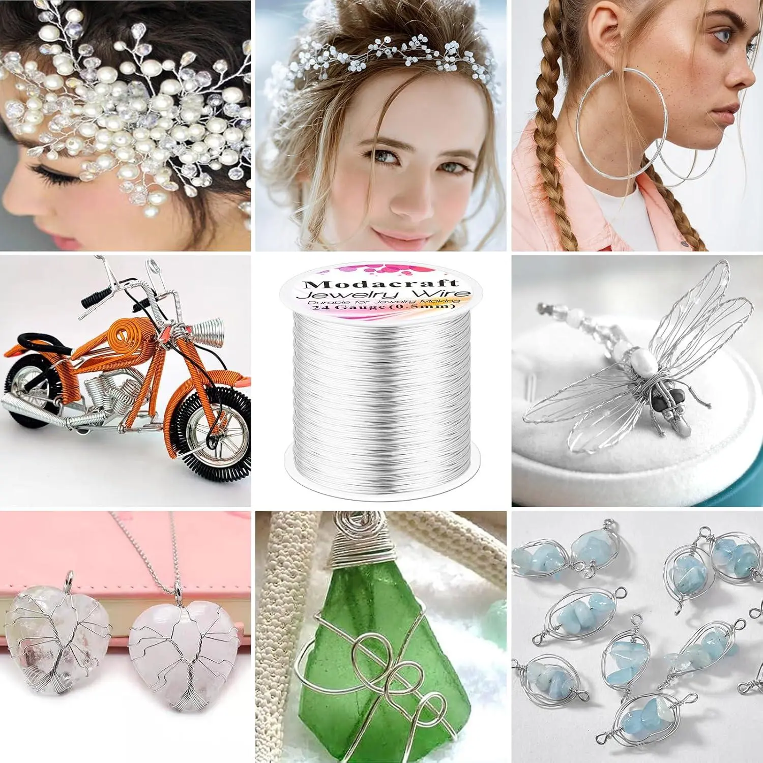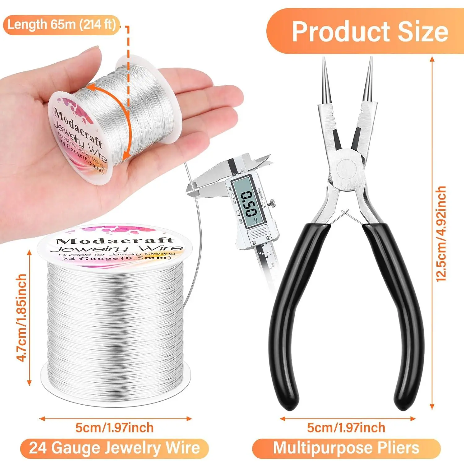 Modacraft 24 Gauge Wire for Jewelry Making with 4-in-1 Pilers, 213.3 FT/0.5 mm Craft Wire Tarnish Resistant Copper Beading Wire for Jewelry Making Supplies and Crafting (Silver)