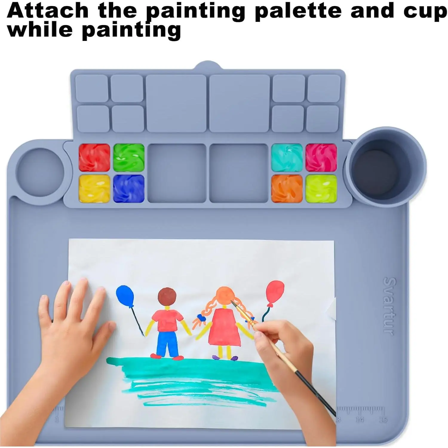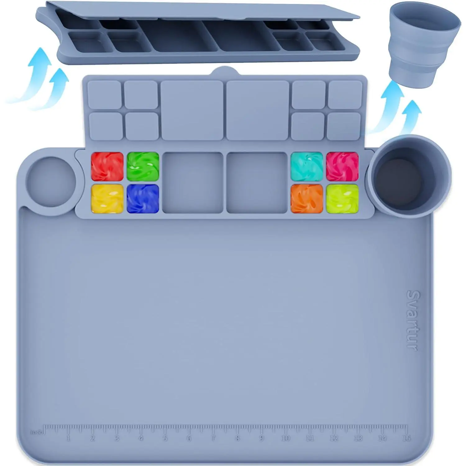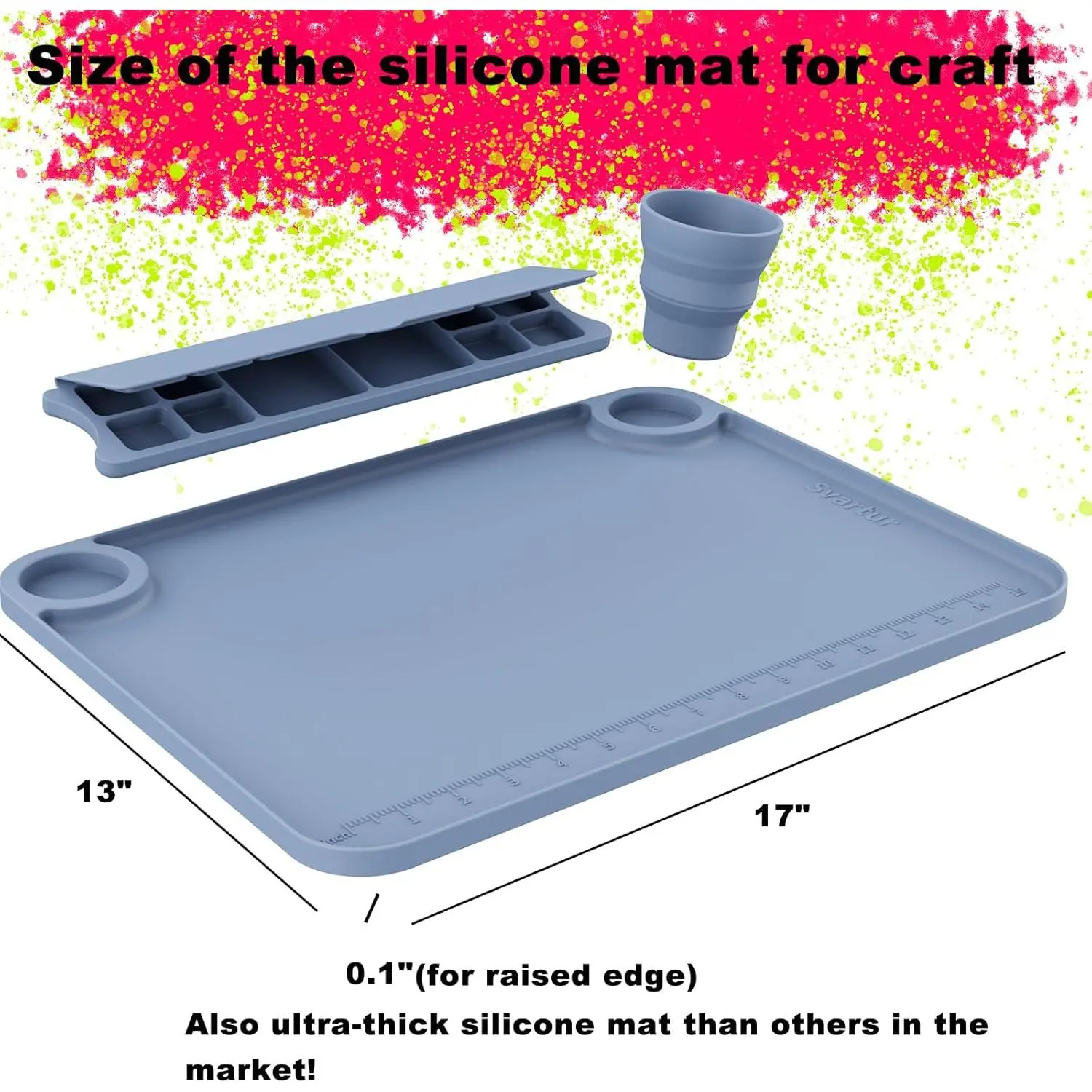 Silicone Painting Mat with Cup and Palette Removable, 17"X13" Thick Silicone Art Mat for Craft with Raised Edge for Resin DIY Making, Gray
