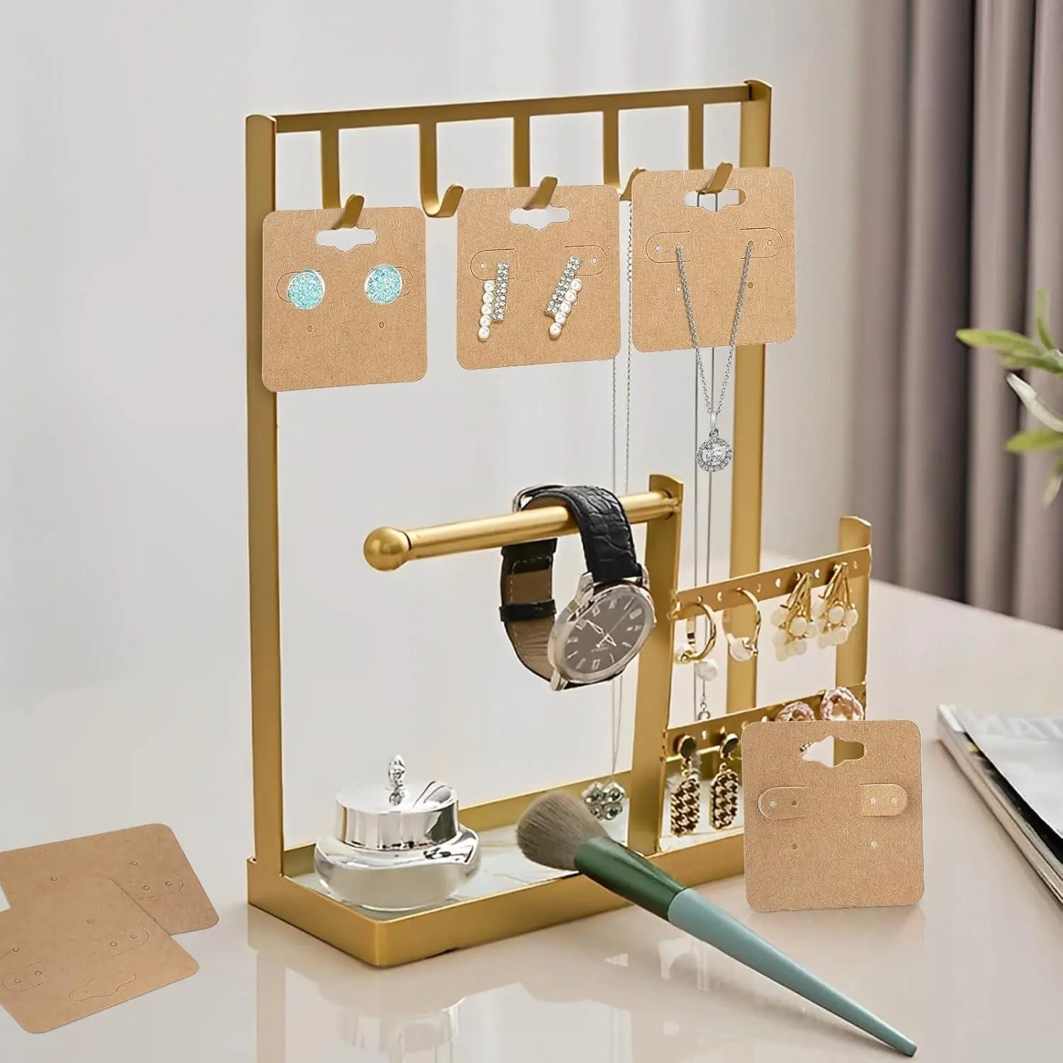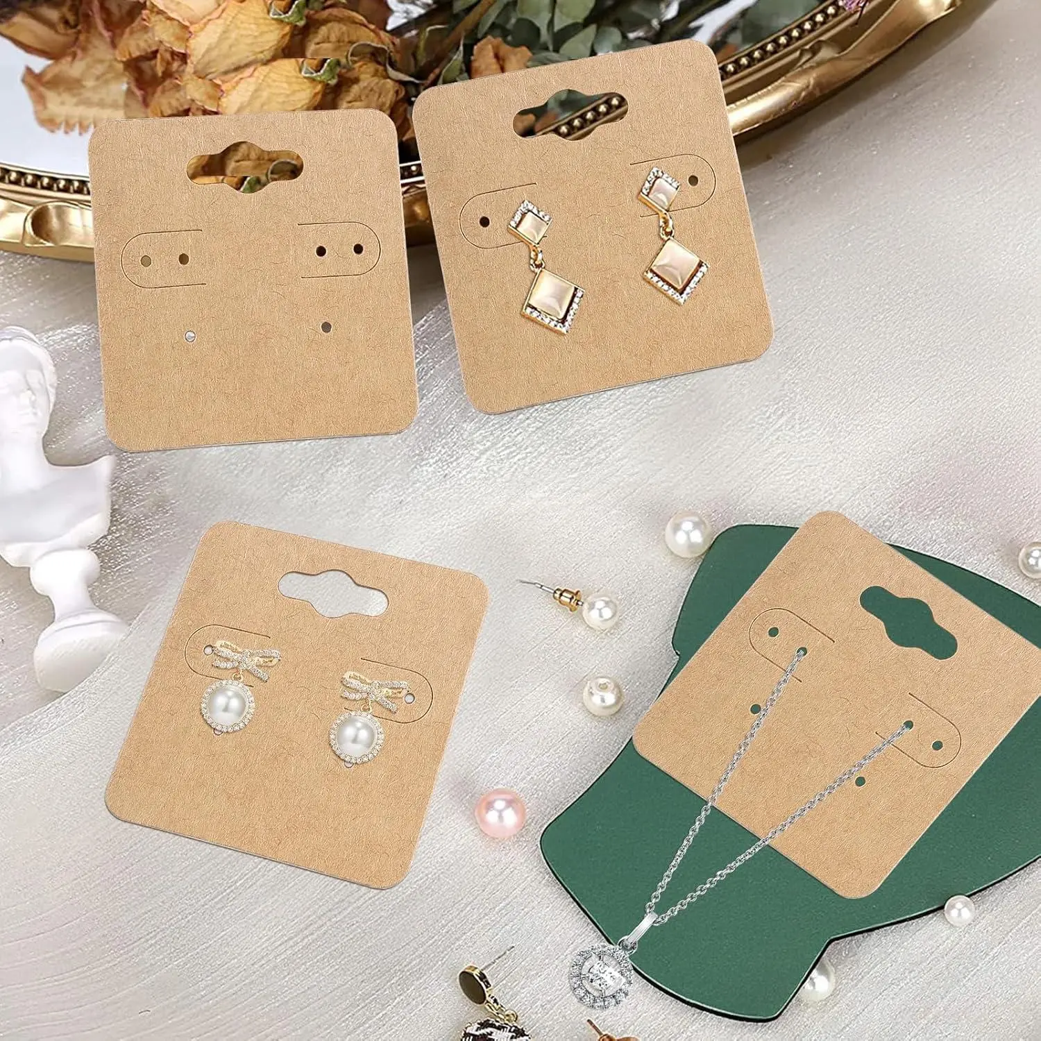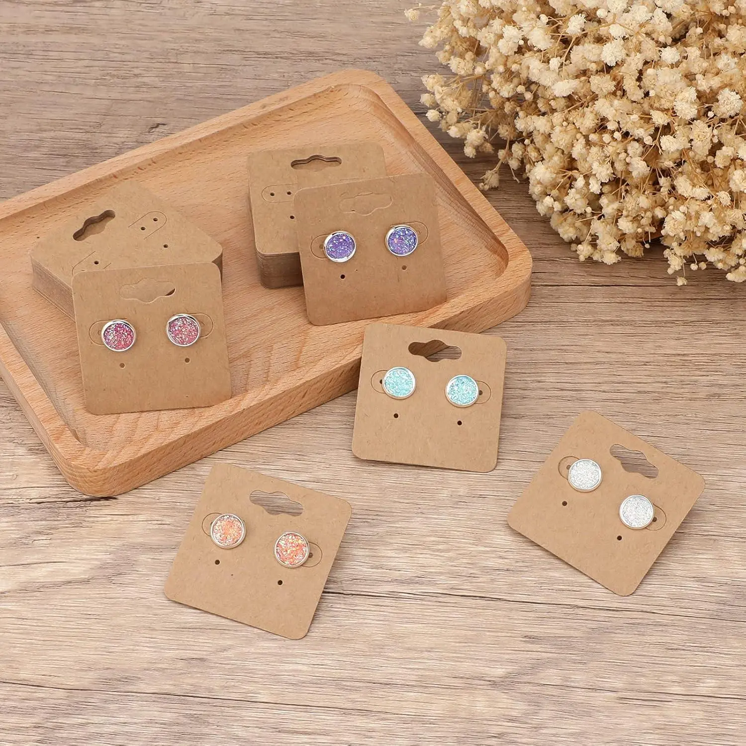 joycraft 100Pcs Earring Display Holder Cards, 2 Inch Brown Earring Hanging Cards, Blank Kraft Paper Jewelry Tags with 6 Holes for Selling, Jewelry DIY Crafts, Retail