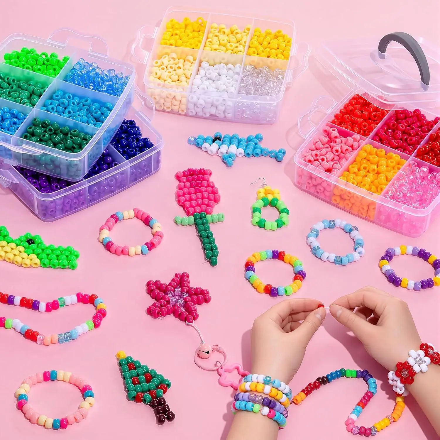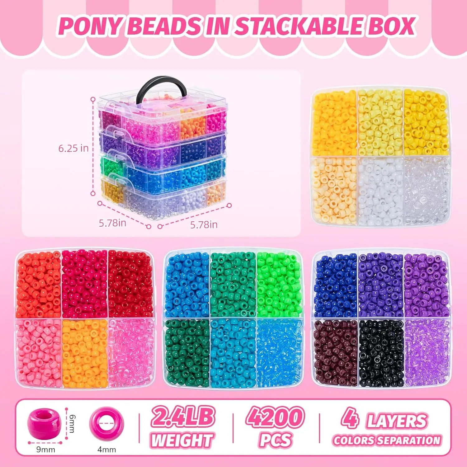 Simetufy 4200Pcs 24 Assorted Color Pony Beads, 6x9mm Plastic Cylindrical Craft Beads for Bracelets, Hair Braids, Jewelry Making, DIY Crafts, 2.41LB