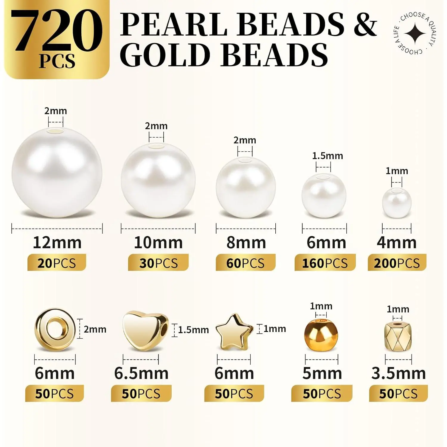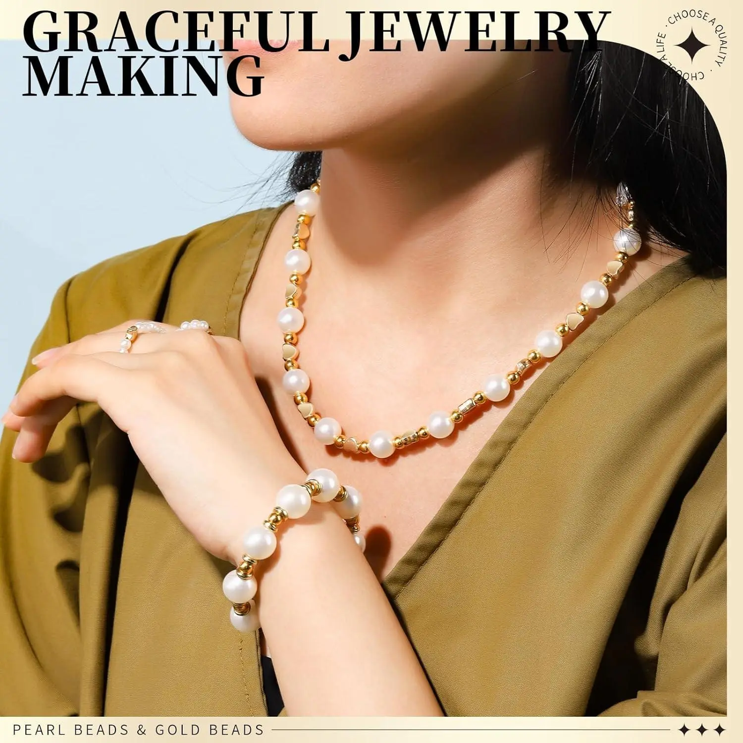 LEOBRO Pearl Beads for Bracelets, 720PCS Bracelet Making Kit for Adult, Bracelet Bead Kits, Small Pearl Beads and Gold Beads for Bracelets, Jewelry Making Kit