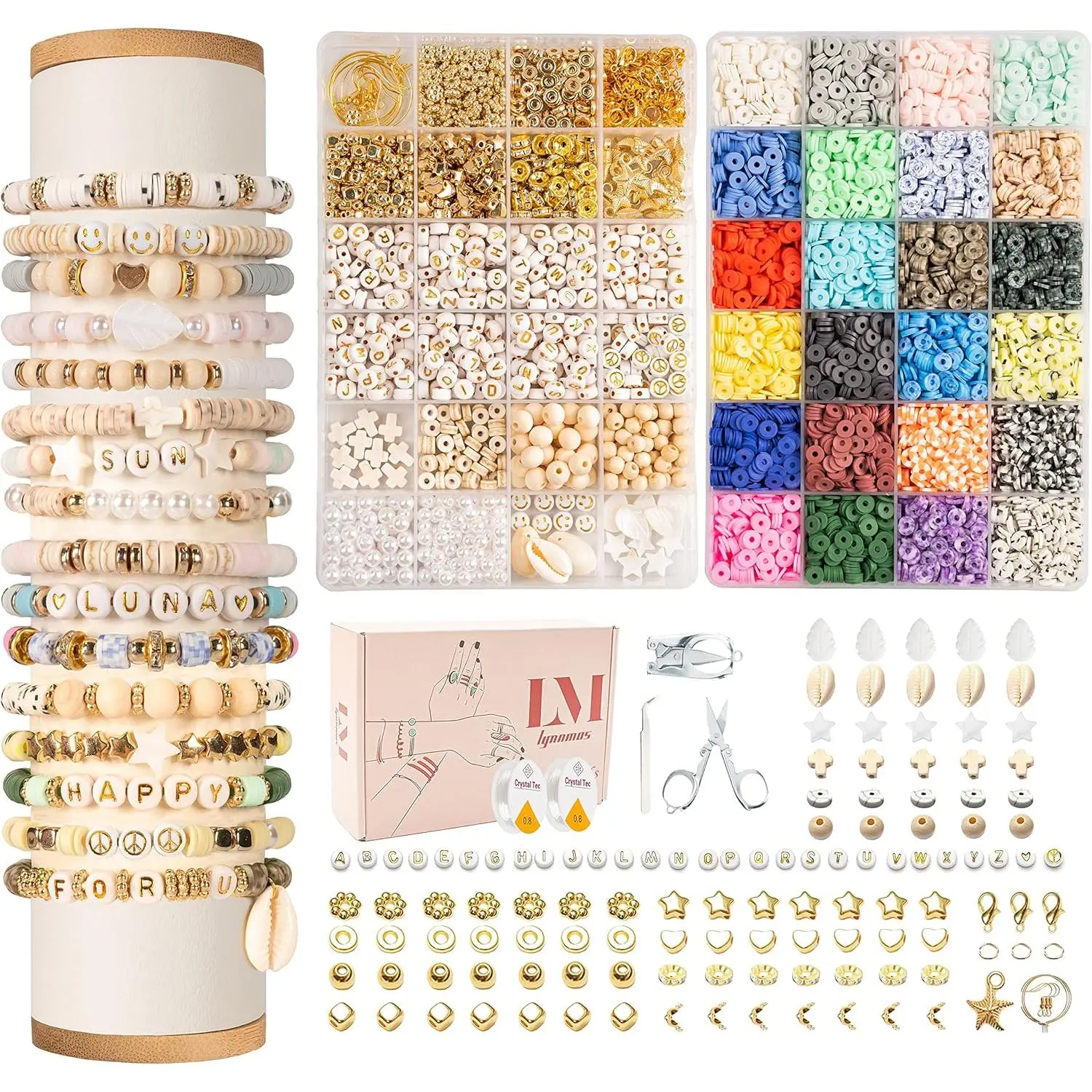 Lynnmos Clay Beads 8000 Pcs 2 Boxes Bracelet Making Kit - 24 Colors Polymer Clay Beads for Bracelet Making Set - Heishi Disc Beads for Jewelry Making kit with Charms and Gift Pack for Girls