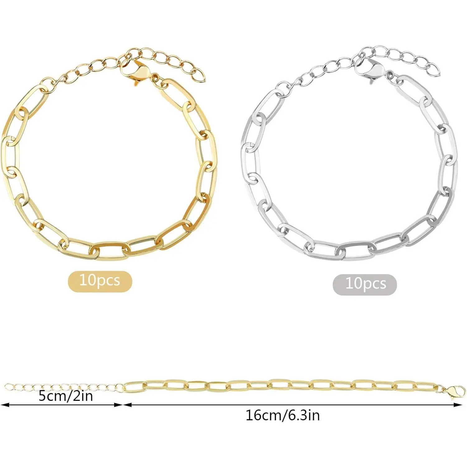 tiggell 20pcs Chain Bracelets Kit Alloy Link with Lobster Clasps for Christmas DIY Women Jewelry Findings Bracelet Making (Gold & Silver)